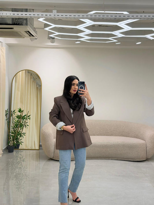 Şal Yaka Leopar Astarlı Bleazer Ceket Vizon