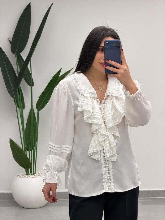 Dantel Detay Fırfırlı Gömlek Beyaz