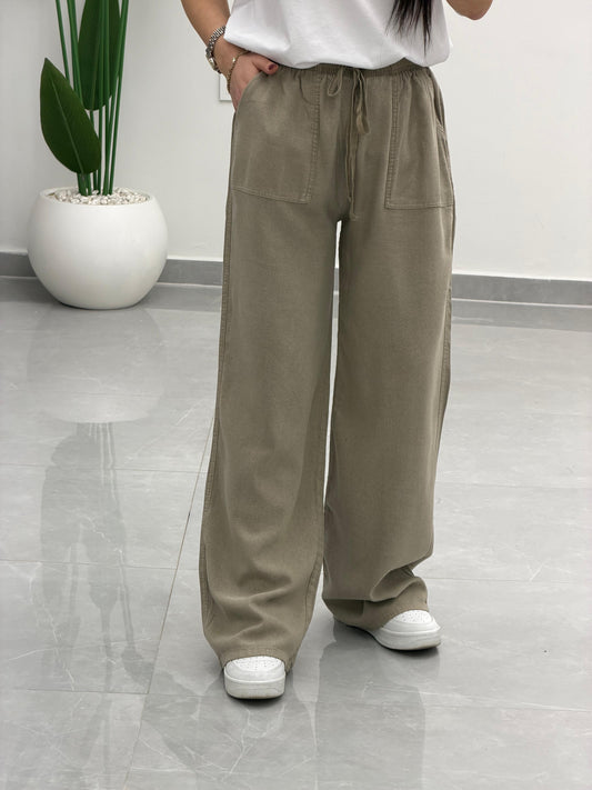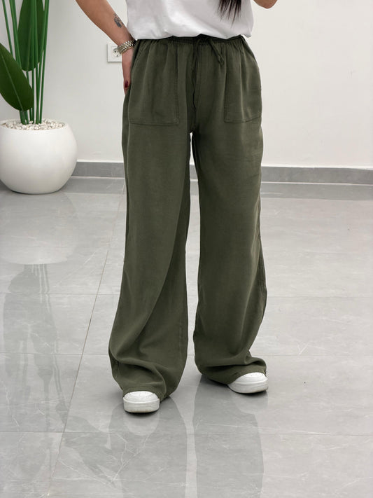 Bol Paça Yüksek Bel Tensel Palazzo Pantolon Haki