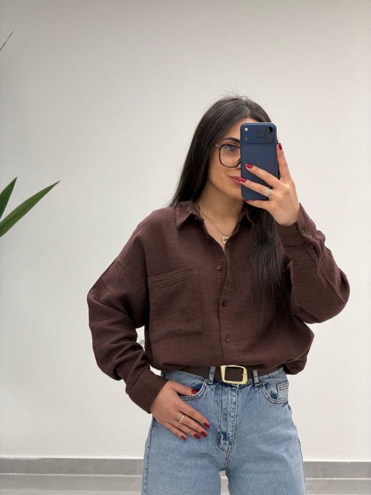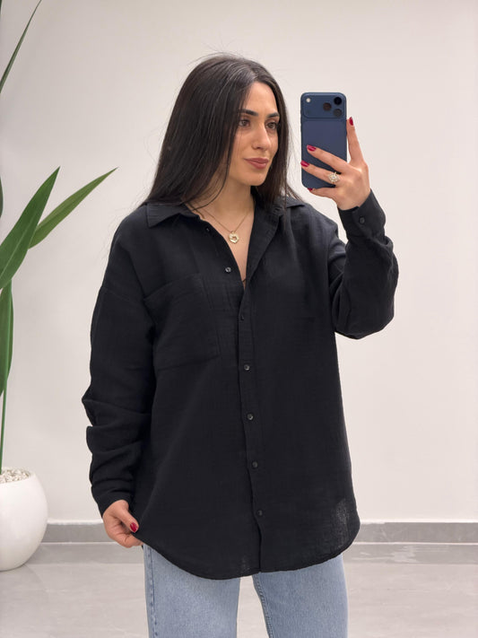 Tek Cepli Oversize Müslin Gömlek Siyah