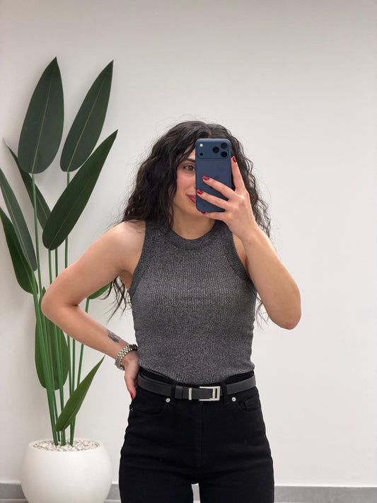 Simli Halter Yaka Atlet Antrasit