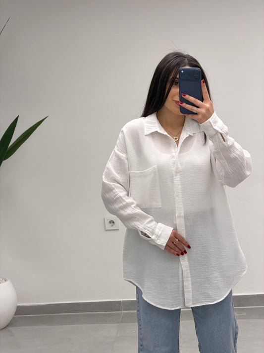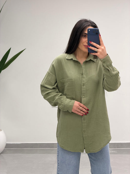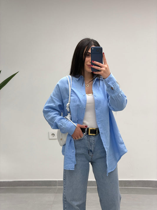 Tek Cepli Oversize Müslin Gömlek Mavi