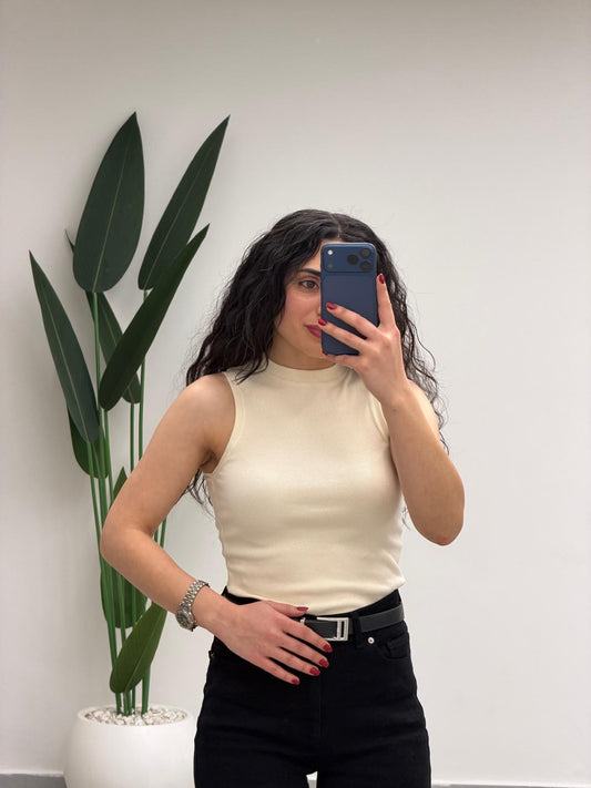 Simli Halter Yaka Atlet Bej