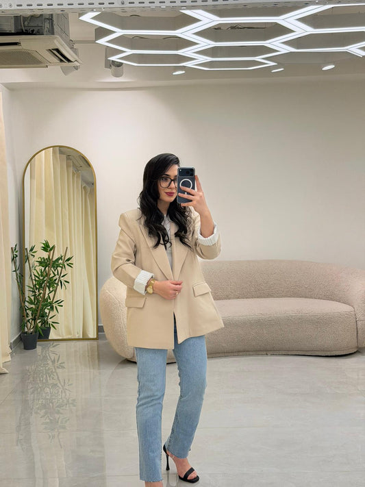 Şal Yaka Kol Katlamalı Astarlı Ceket Vizon