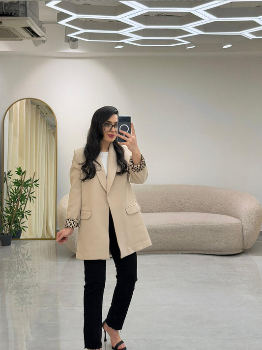 Şal Yaka Leopar Astarlı Bleazer Ceket Vizon