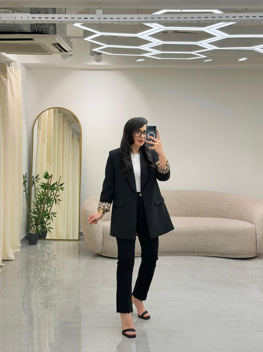 Şal Yaka Leopar Astarlı Bleazer Ceket Siyah