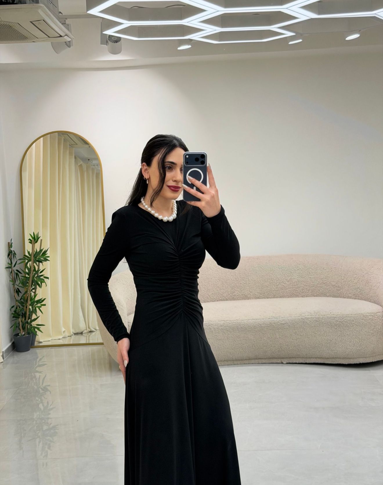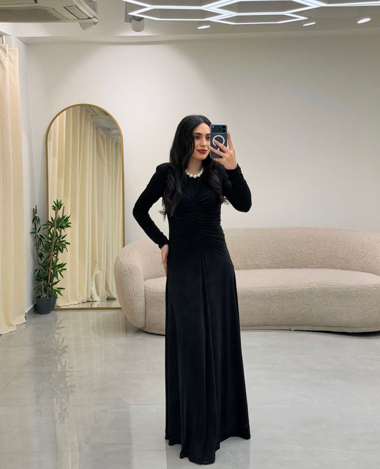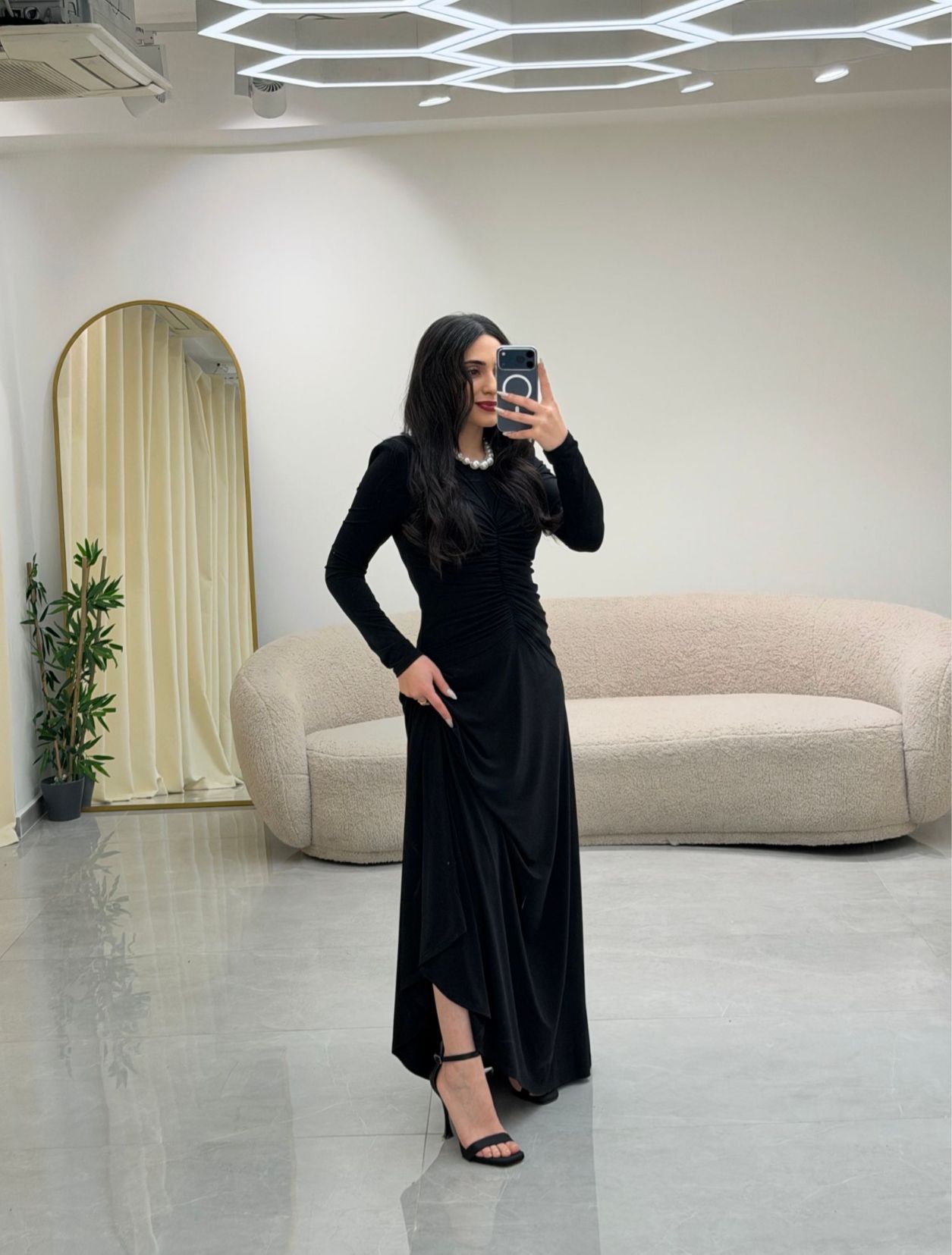 Bel Büzgülü Elbise Siyah