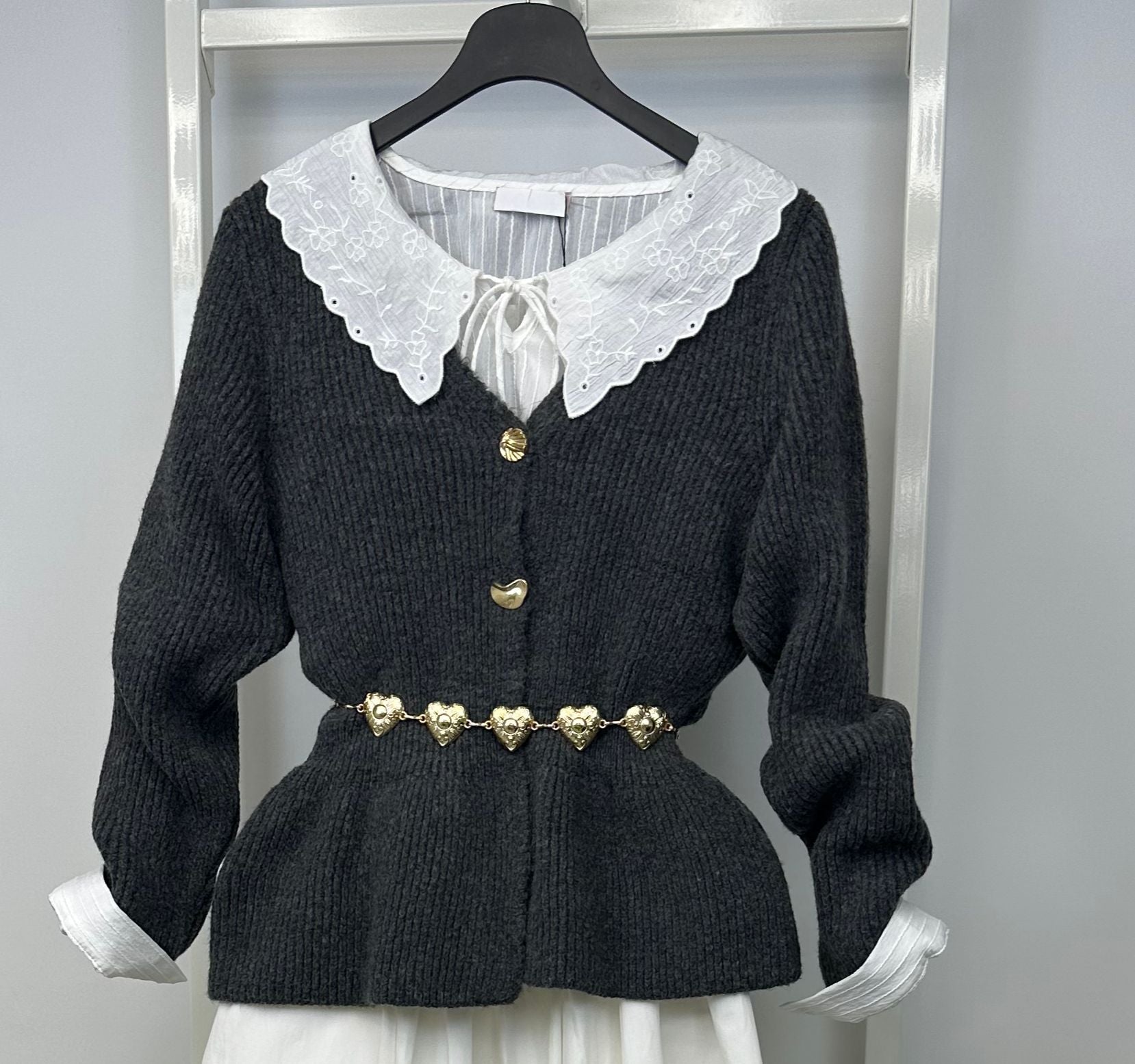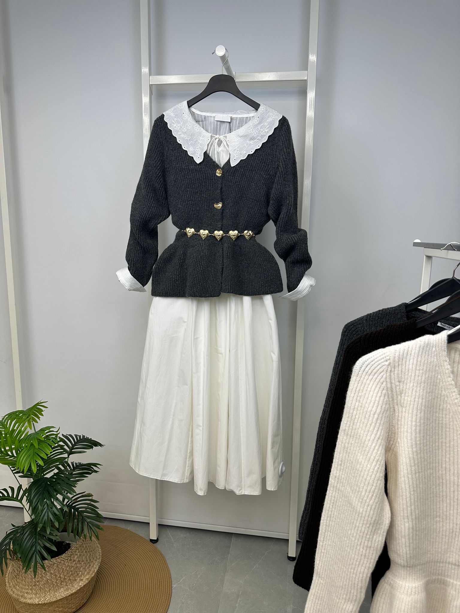 Bel oturtmalı, peplum etekli, V yaka, uzun kollu triko kazak