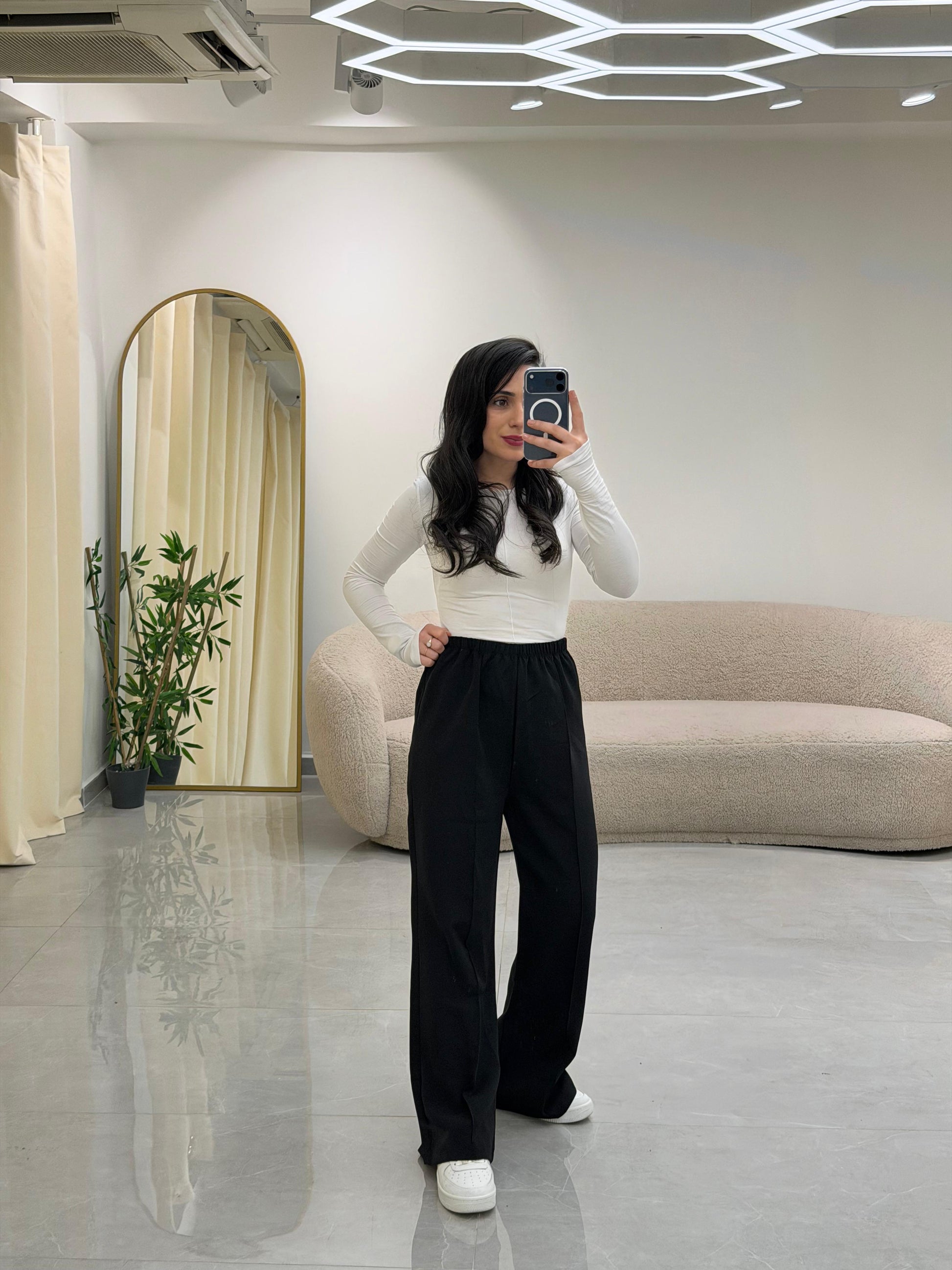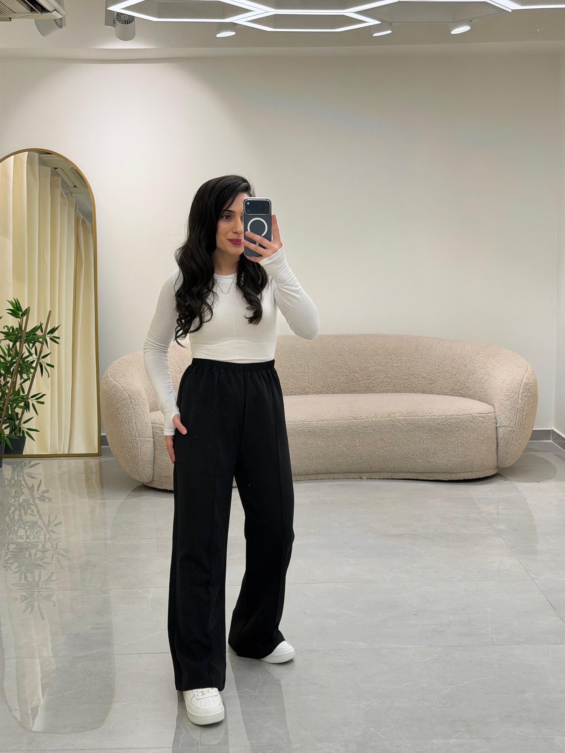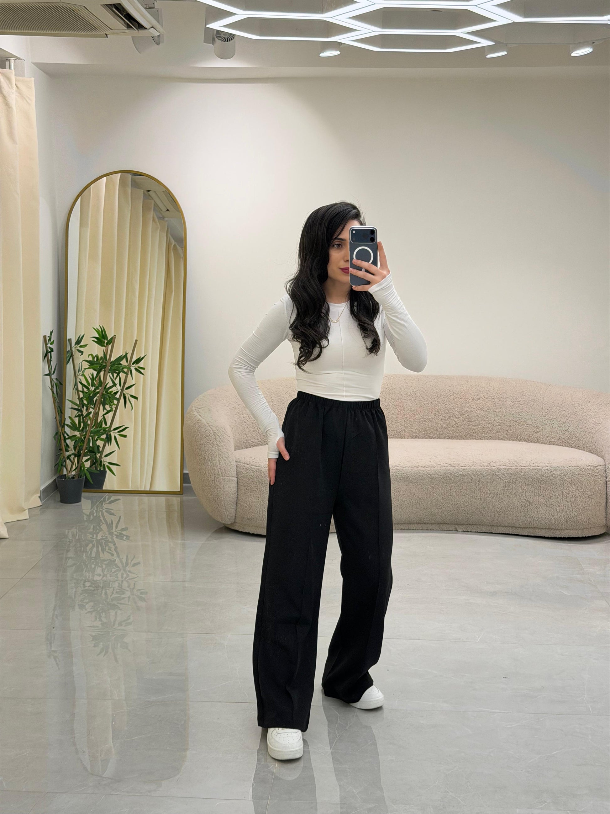 Bol Kesim Çımalı Pantolon Siyah