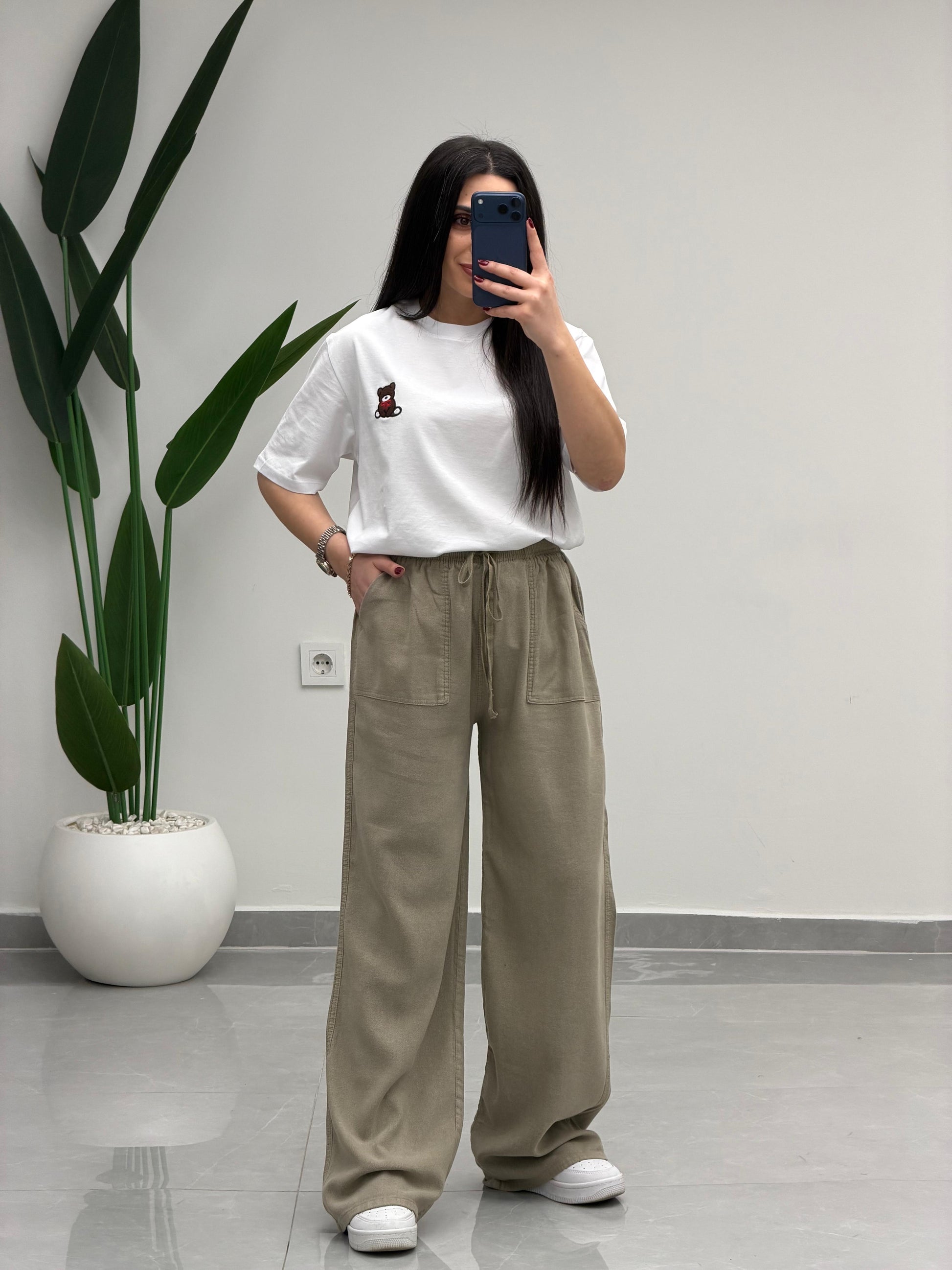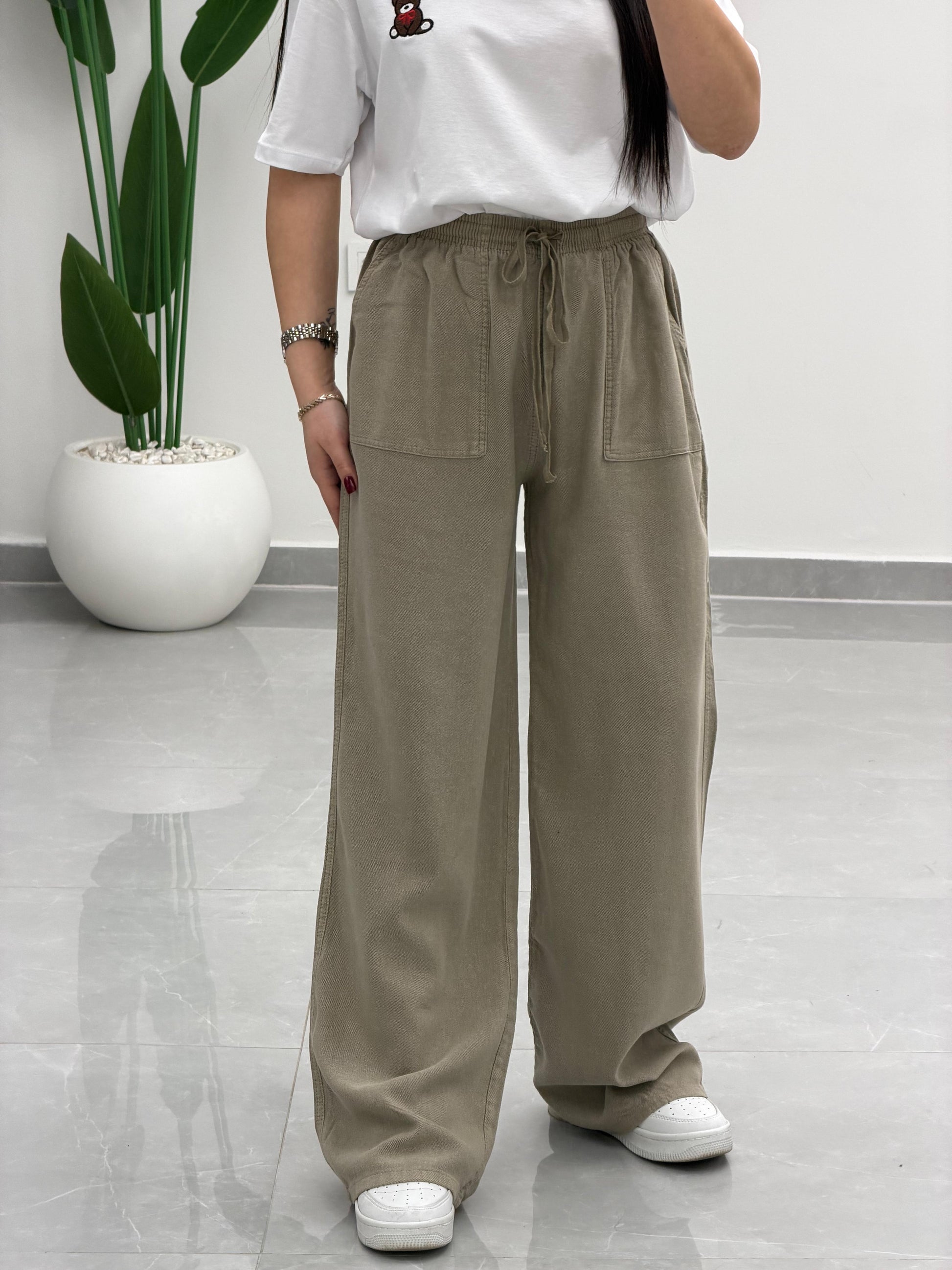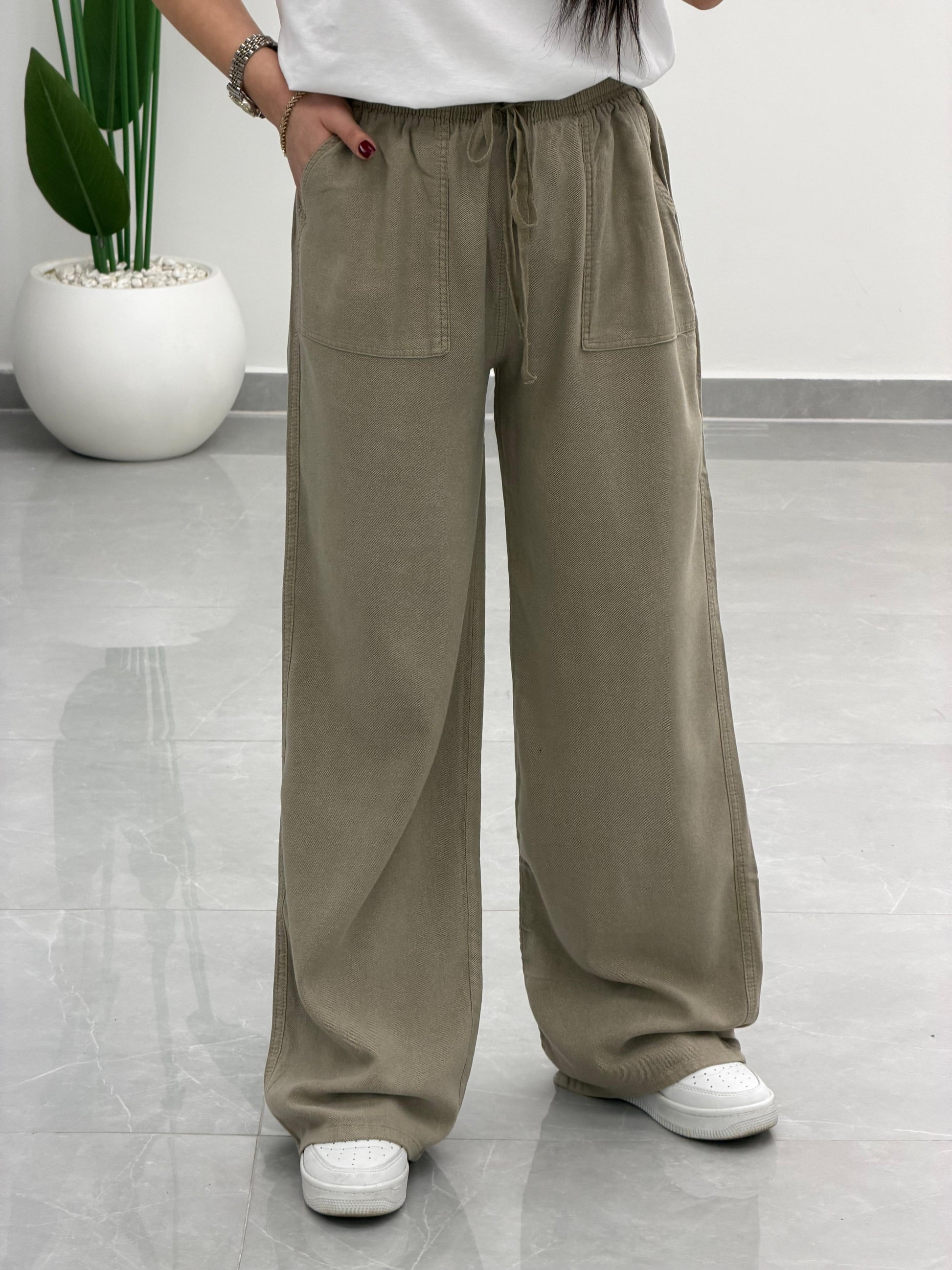 Bol Paça Yüksek Bel Tensel Palazzo Pantolon Antik Vizon