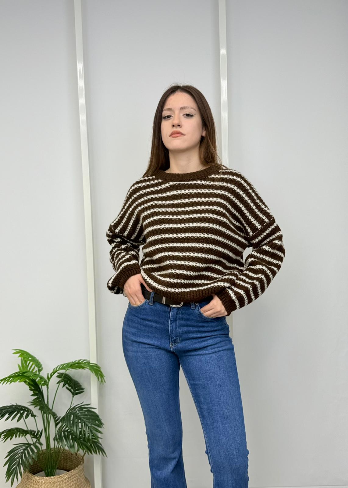 Modern ve rahat tasarımıyla dikkat çeken bu çizgili triko kazak, günlük stilin vazgeçilmezi olmaya aday. Yumuşak dokusu ve esnek yapısıyla vücuda uyum sağlar, konforlu bir kullanım sunar. Çizgi deseniyle sade kombinlere hareket kazandırır.