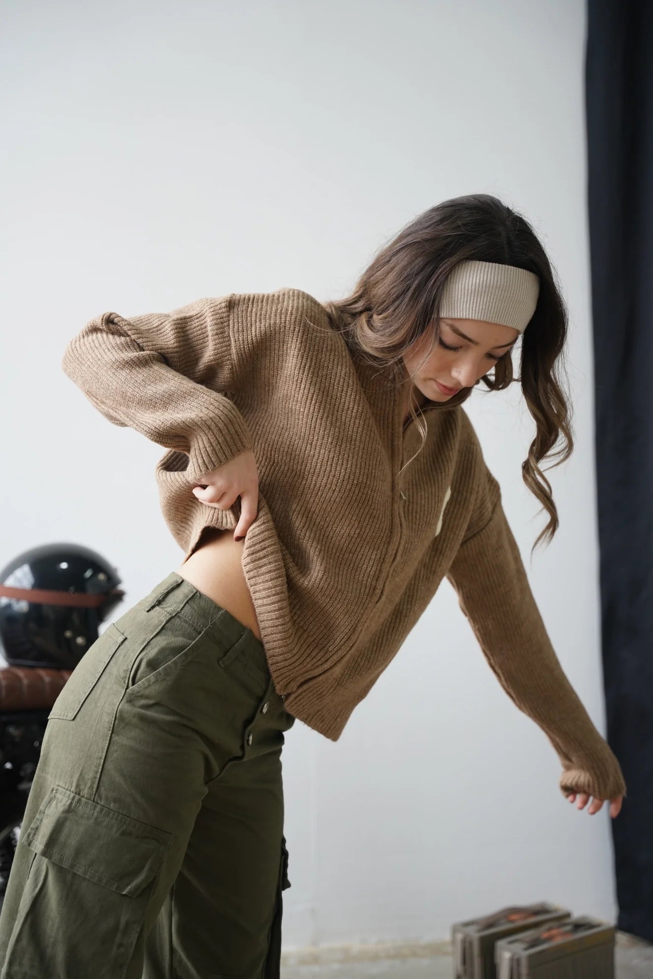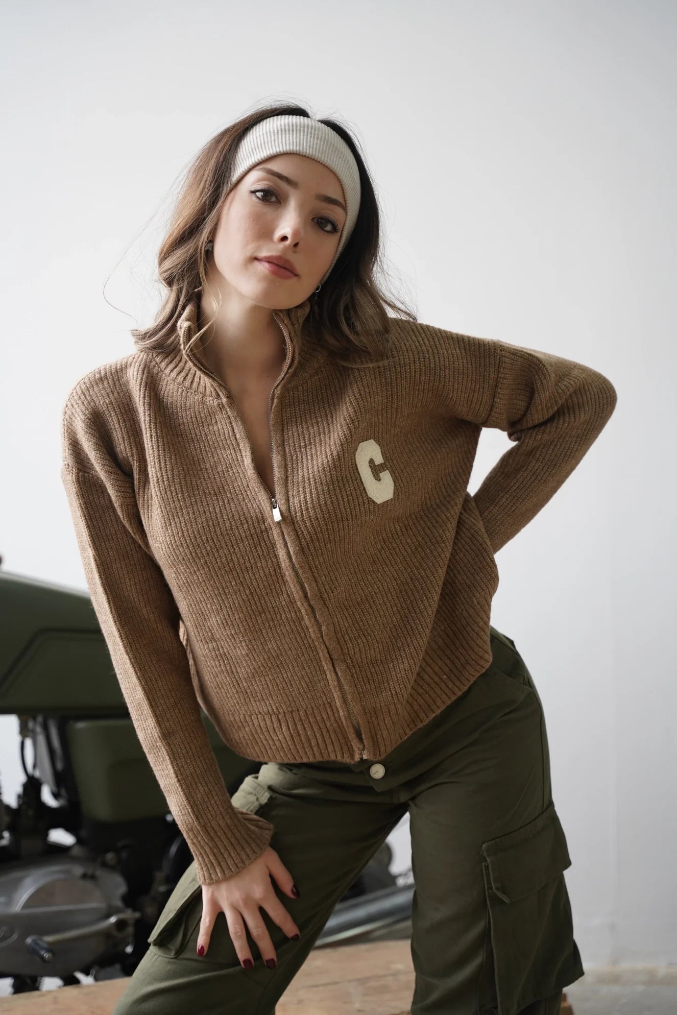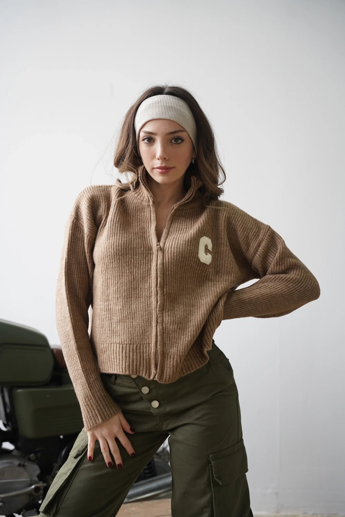 COTS "C" Detay Fermuarlı Kazak - Kahverengi