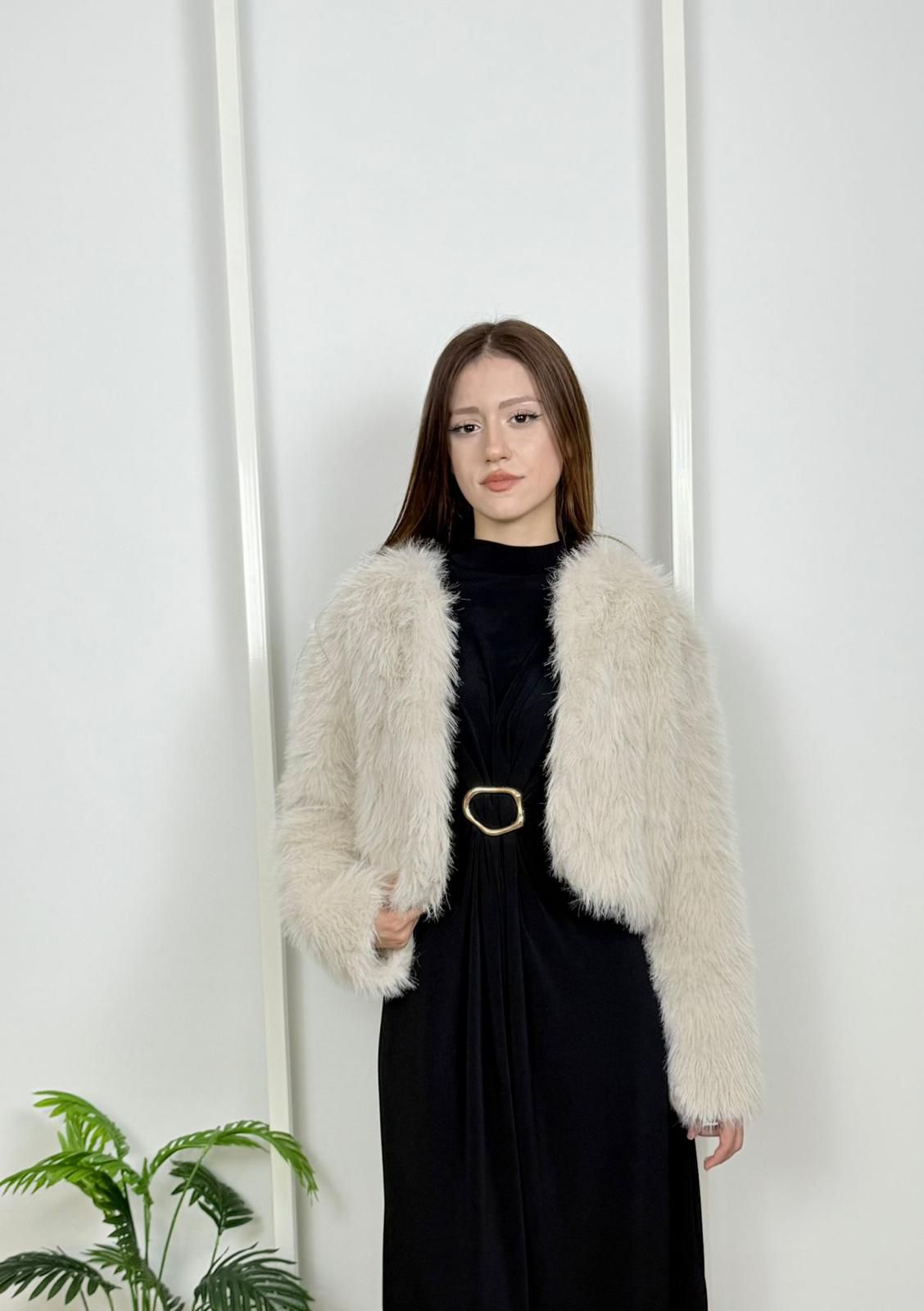 Yumuşacık dokusu ve modern kesimiyle crop kürk mont, soğuk havalarda tarzınızı ön plana çıkarır.