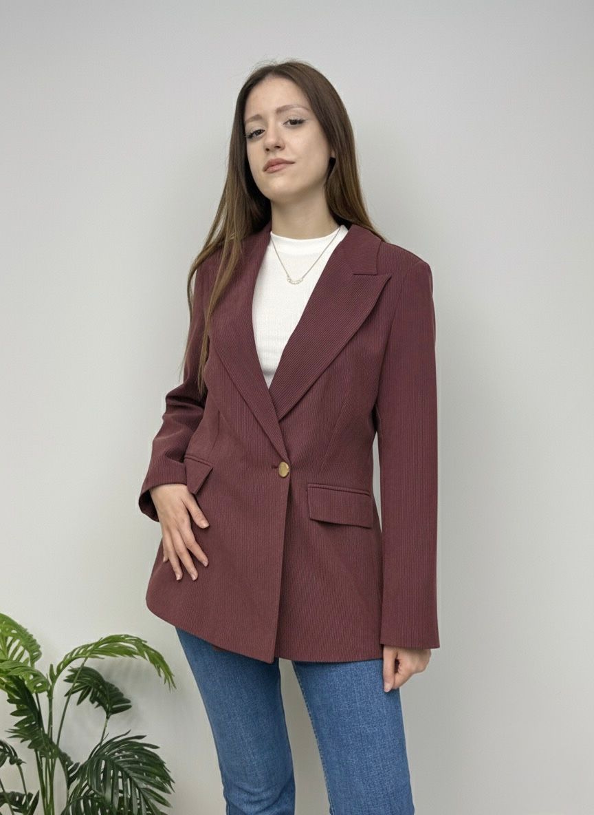 Modern ve zarif çizgileriyle dikkat çeken bu lacivert blazer ceket, günlük ve iş kombinlerinizin vazgeçilmezi olmaya aday. Klasik yaka kesimi ve tek düğmeli tasarımıyla şık bir görünüm sunarken, rahat kalıbı sayesinde gün boyu konfor sağlar.