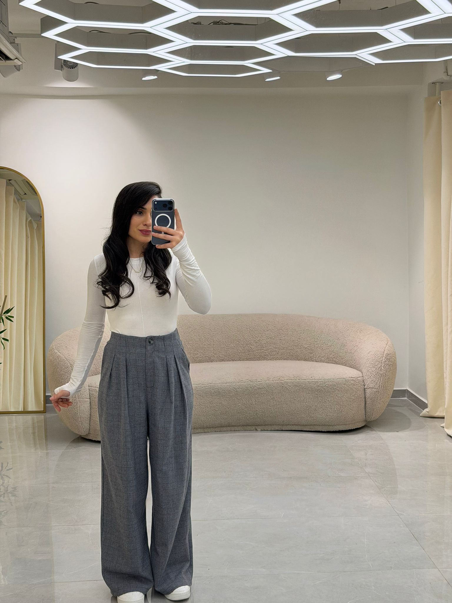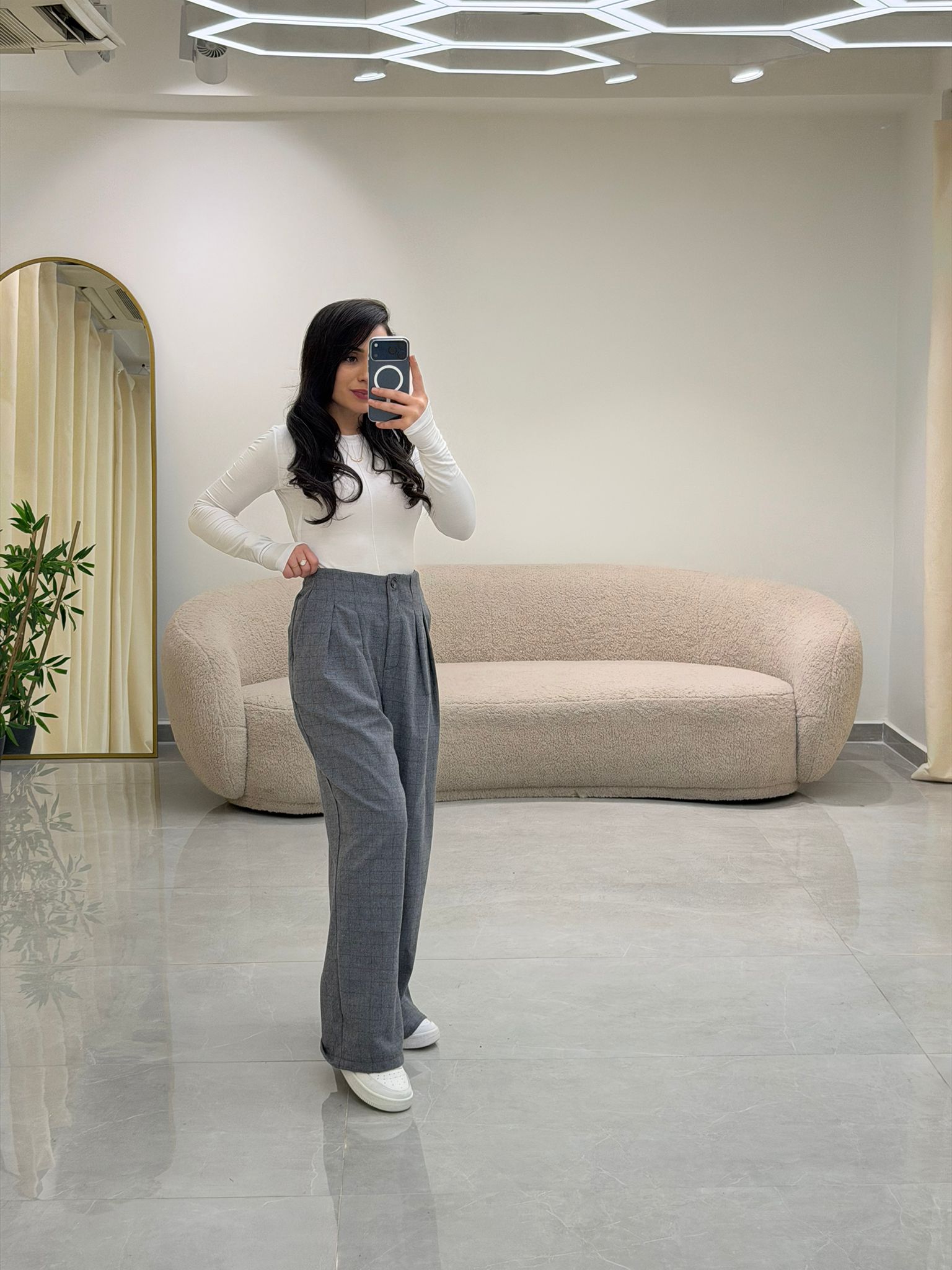 Ekose Kumaş Pantolon Gri