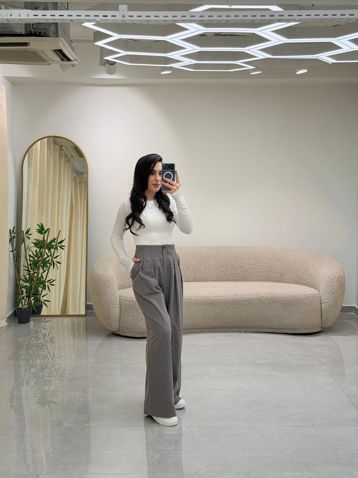 Ekose Kumaş Pantolon Vizon