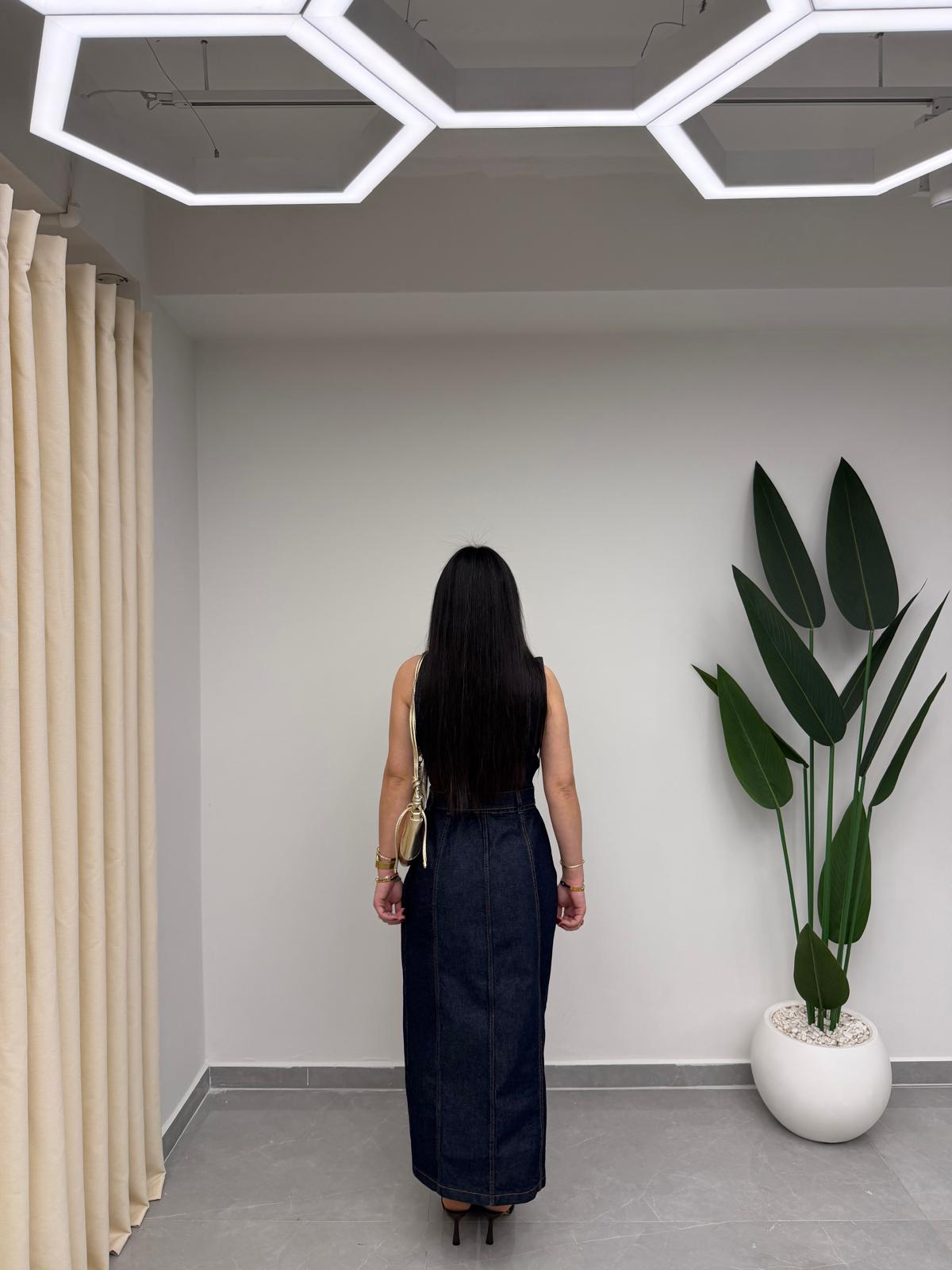 Gold Düğmeli Denim Elbise