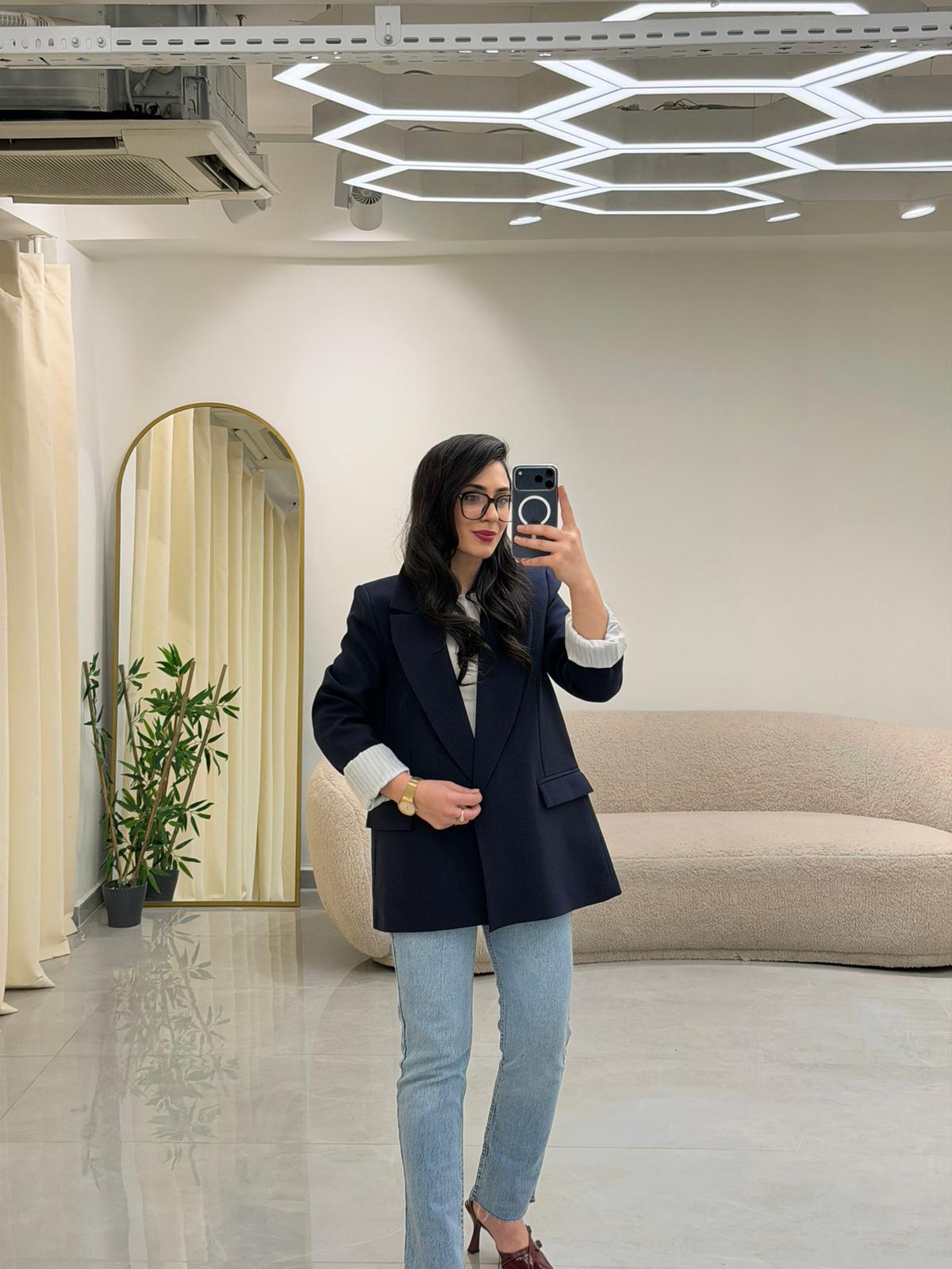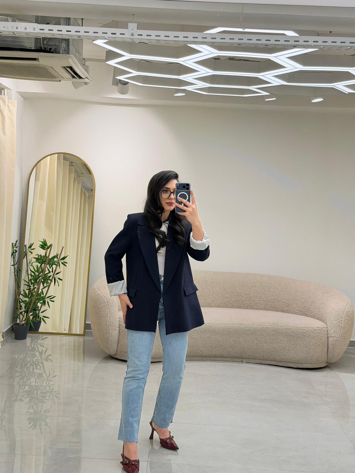 Şal Yaka Kol Katlamalı Astarlı Ceket Lacivert