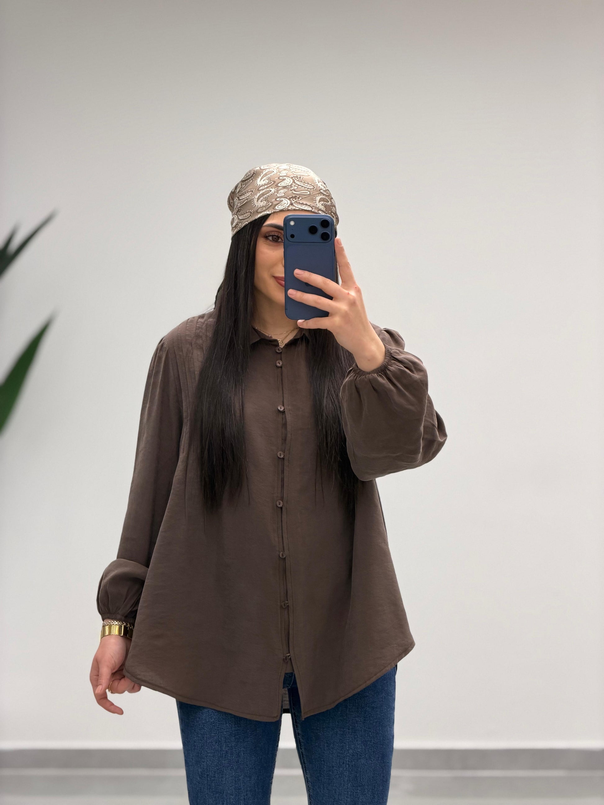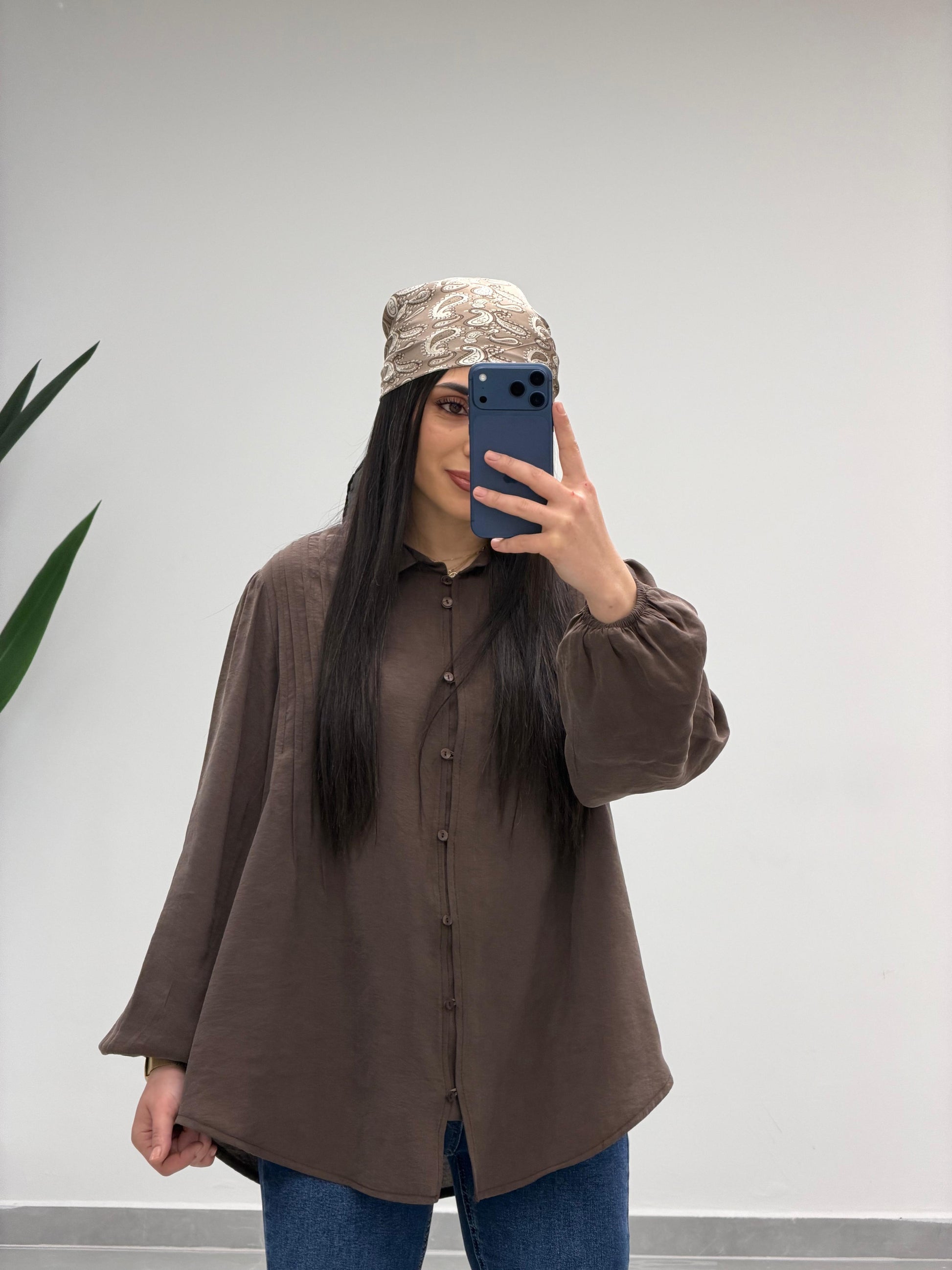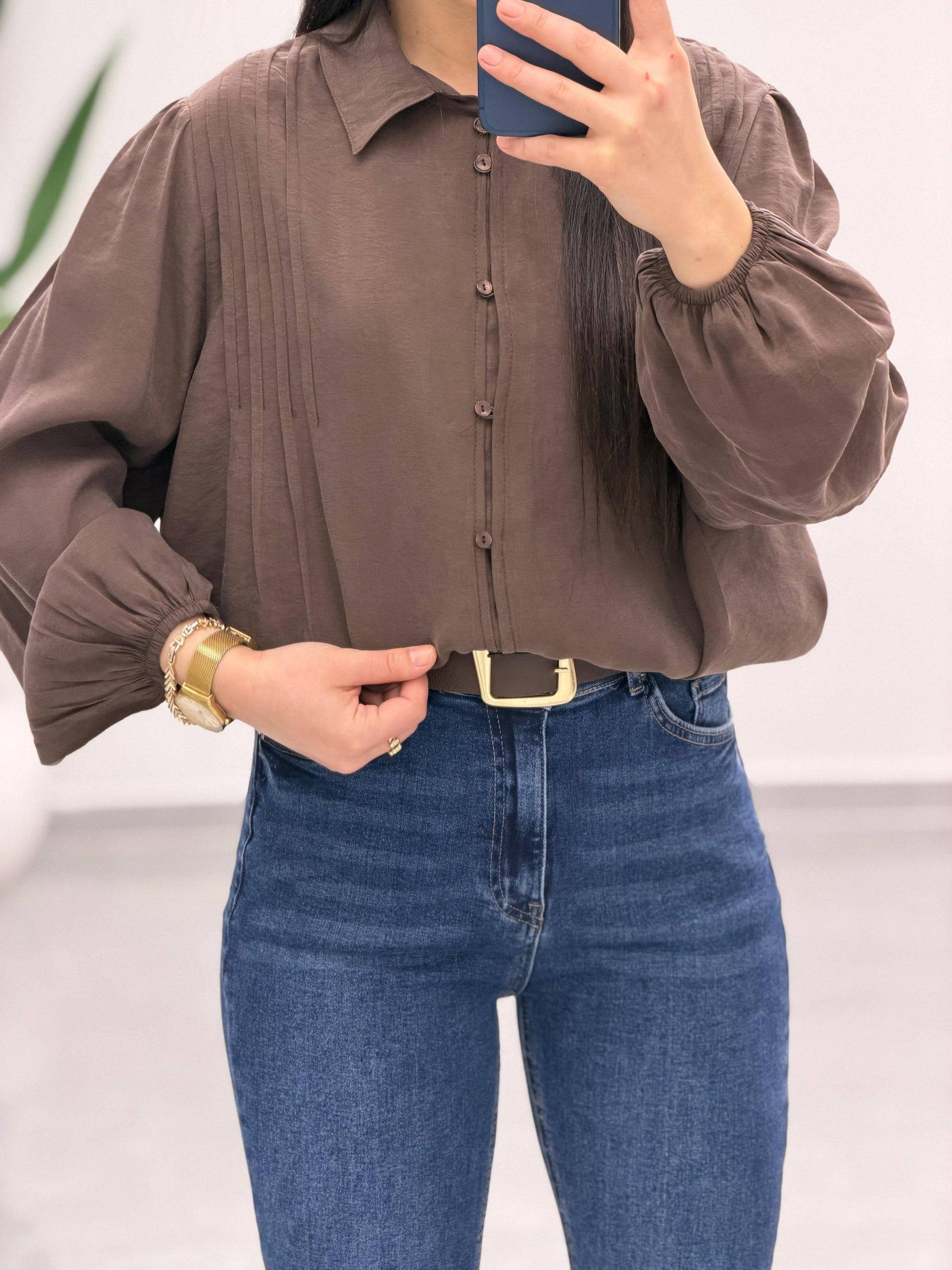 Pens Detaylı Düğme Kapama Gömlek Kahve