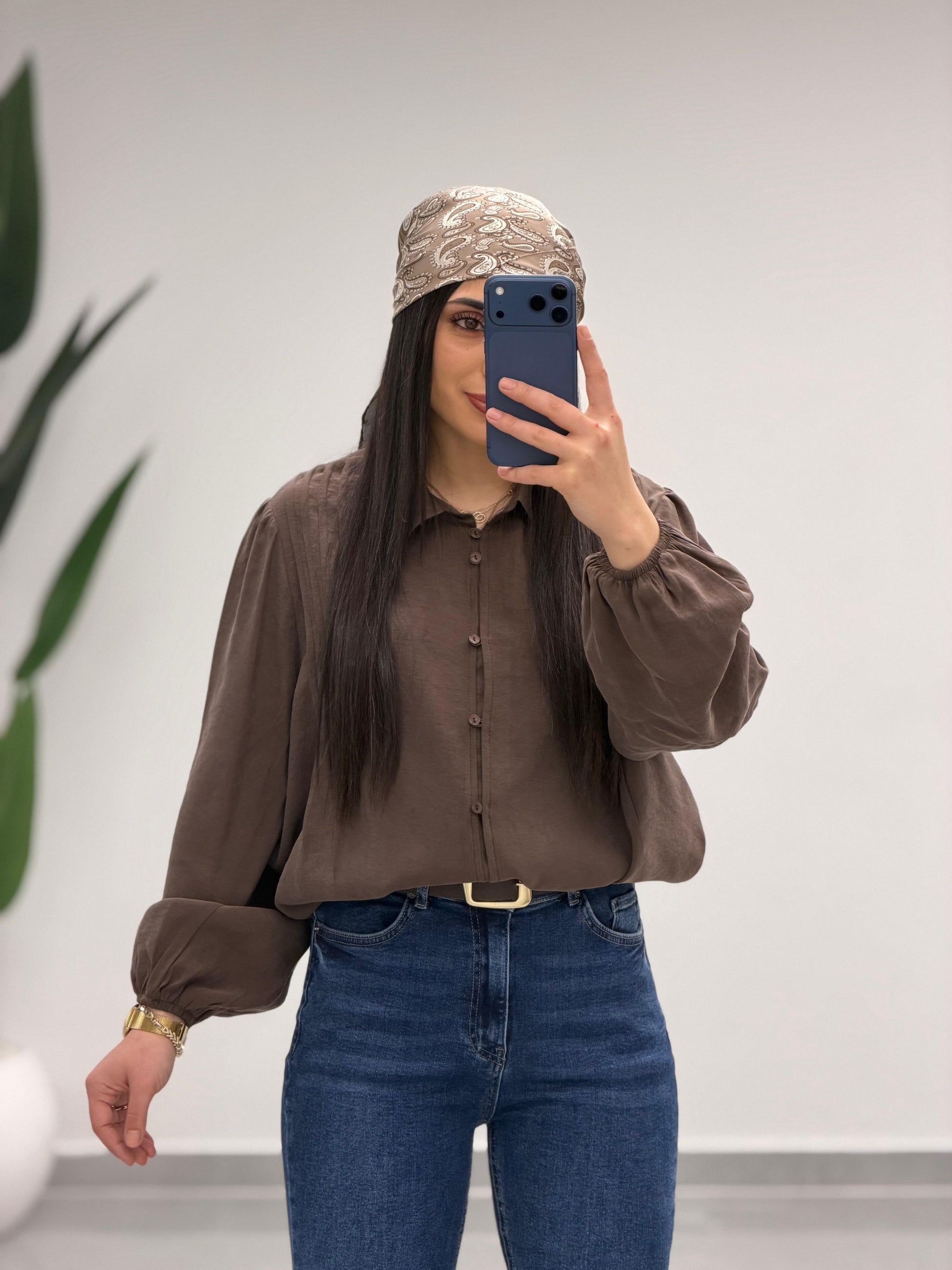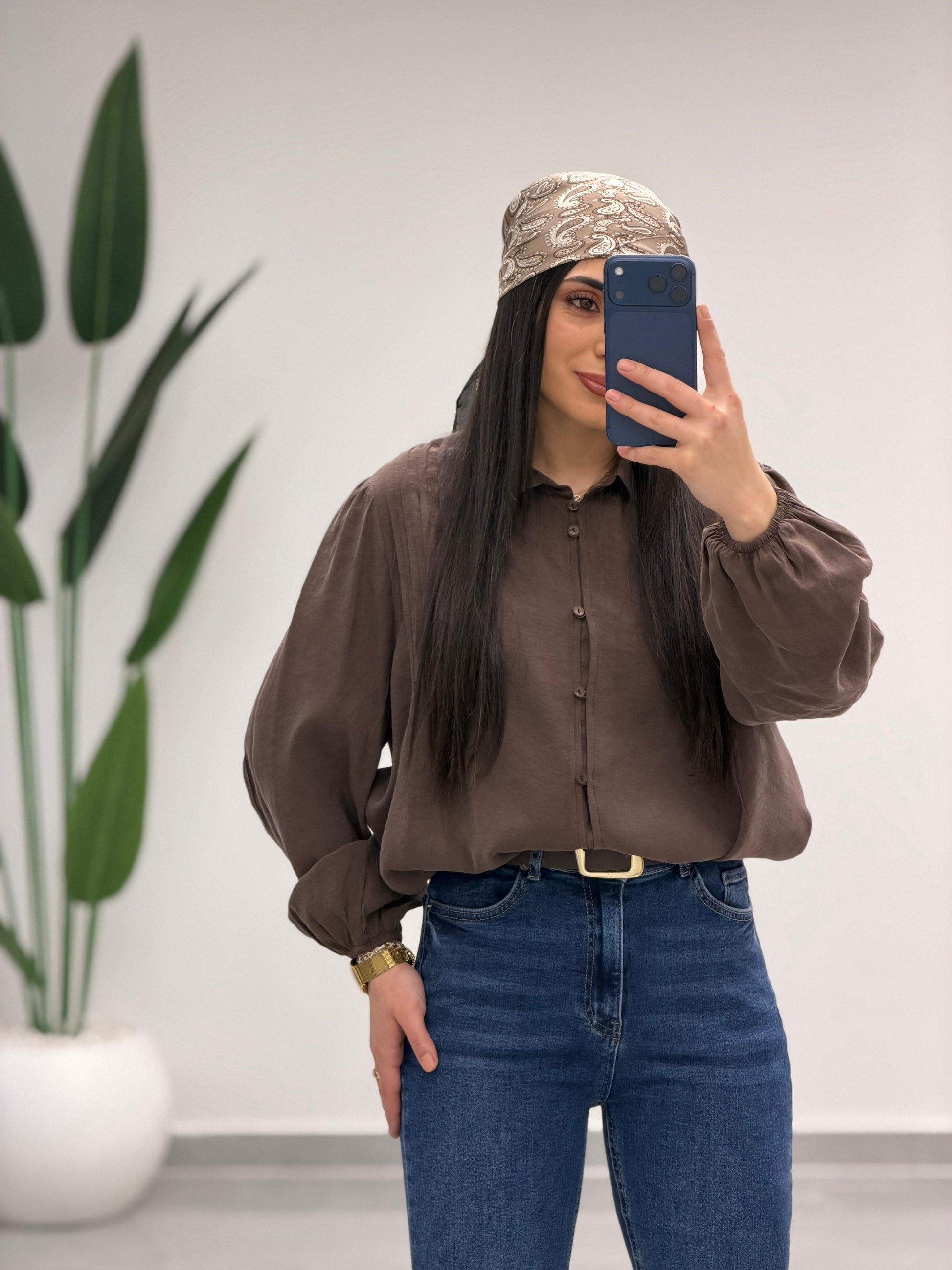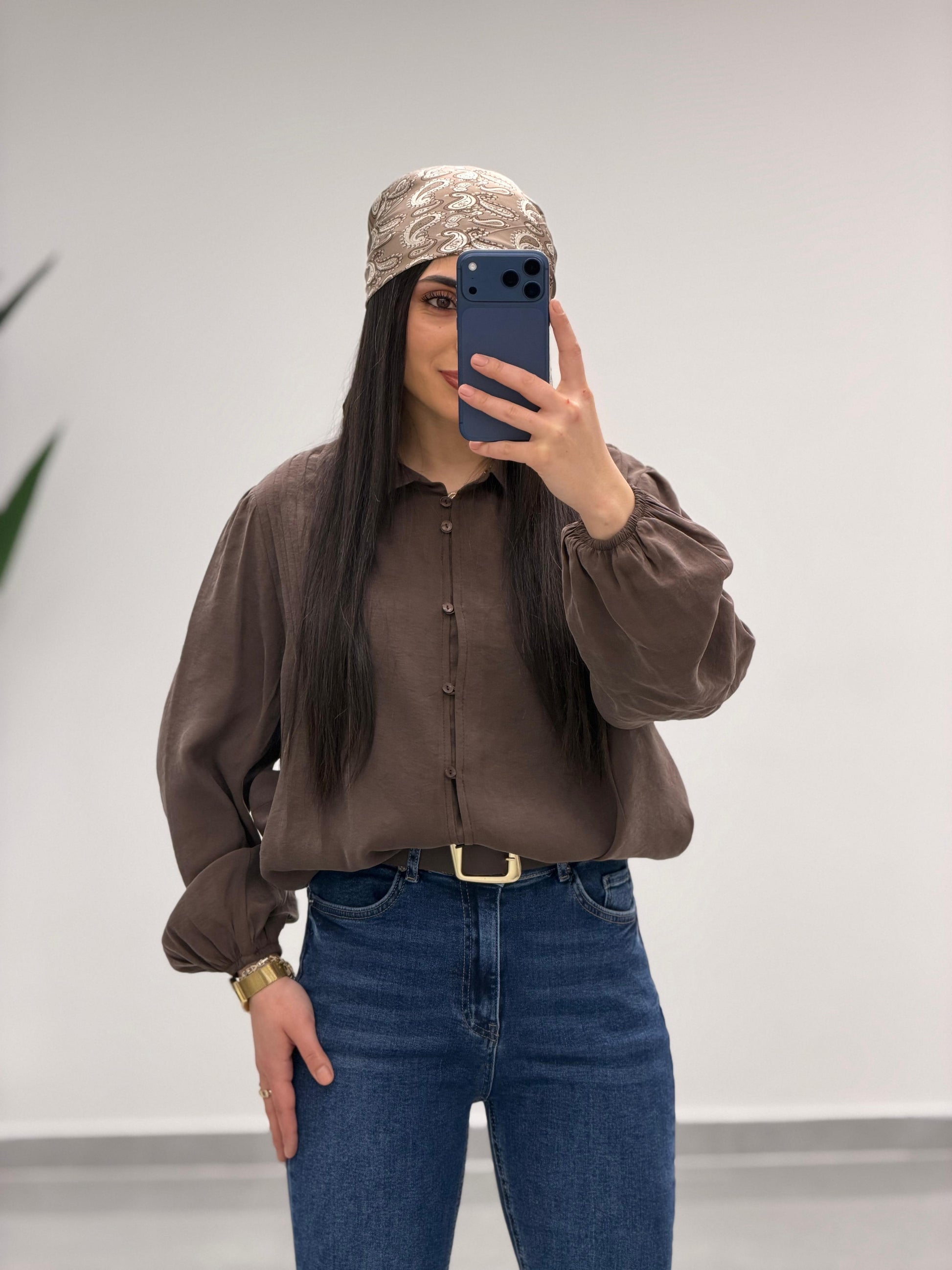 Pens Detaylı Düğme Kapama Gömlek Kahve