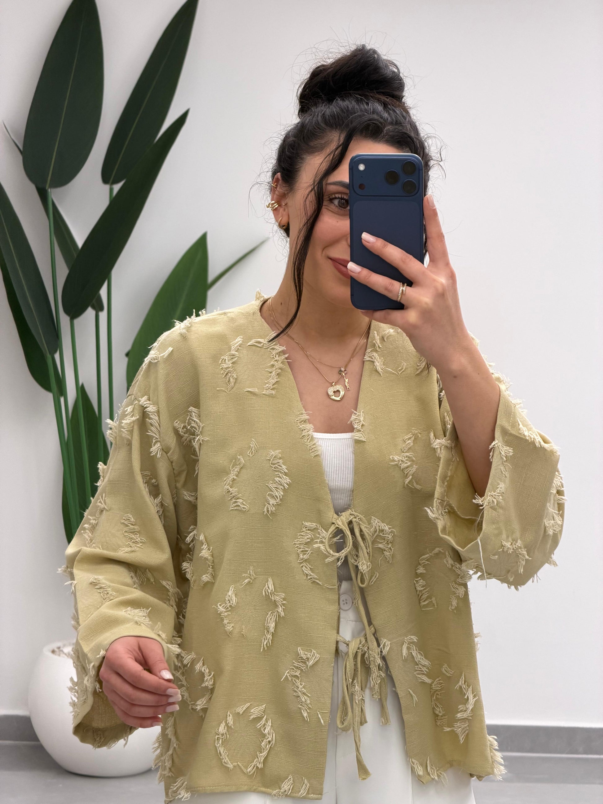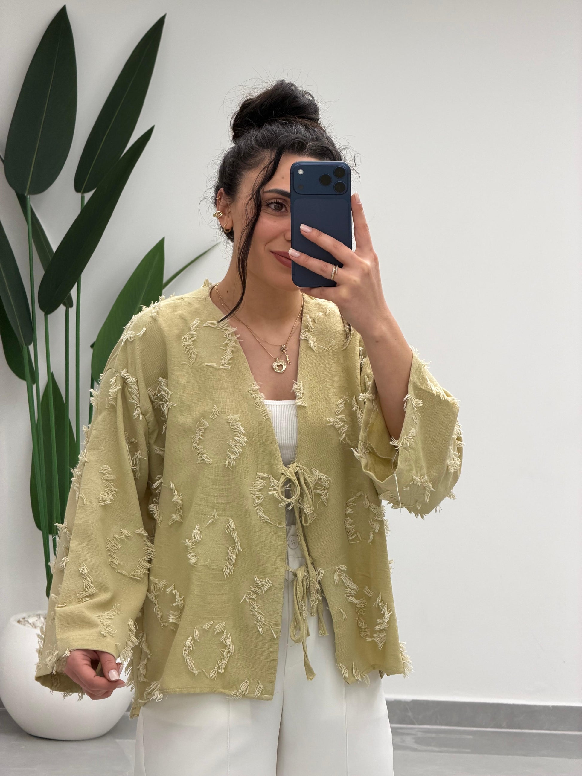 Püskül Detay Bağlamalı Gömlek Yağ Yeşili