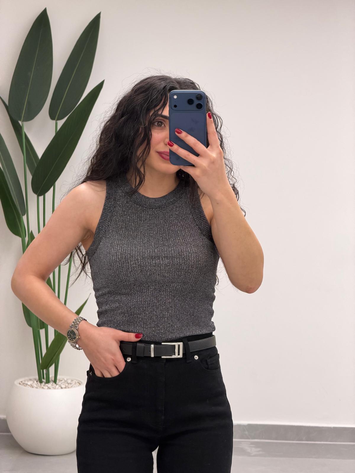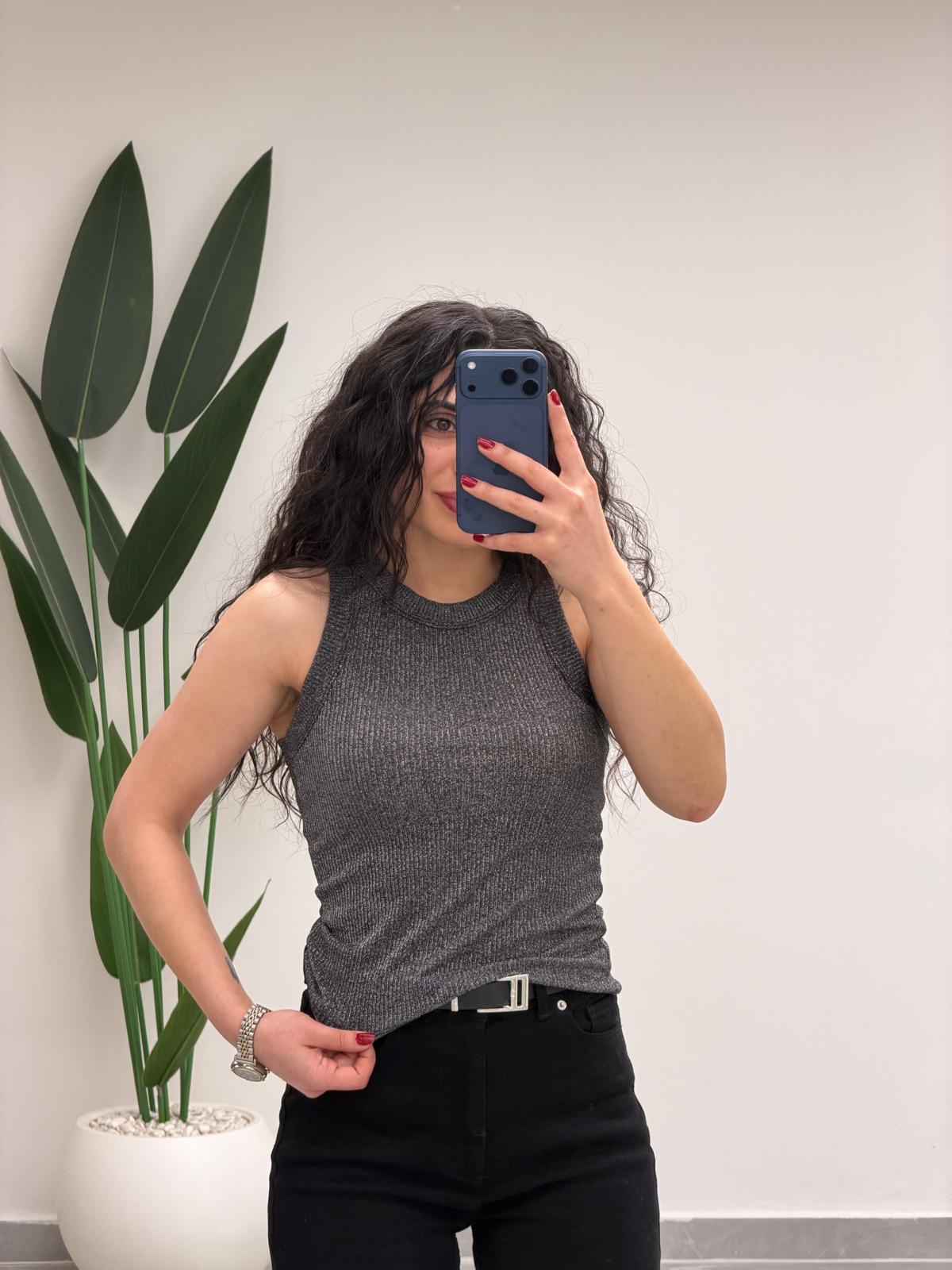 Simli Halter Yaka Atlet Antrasit