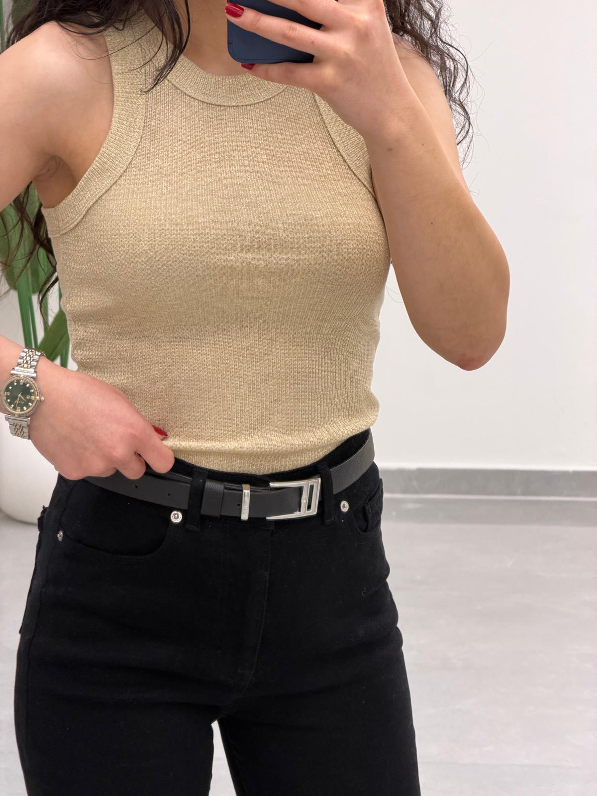 Simli Halter Yaka Atlet Bej