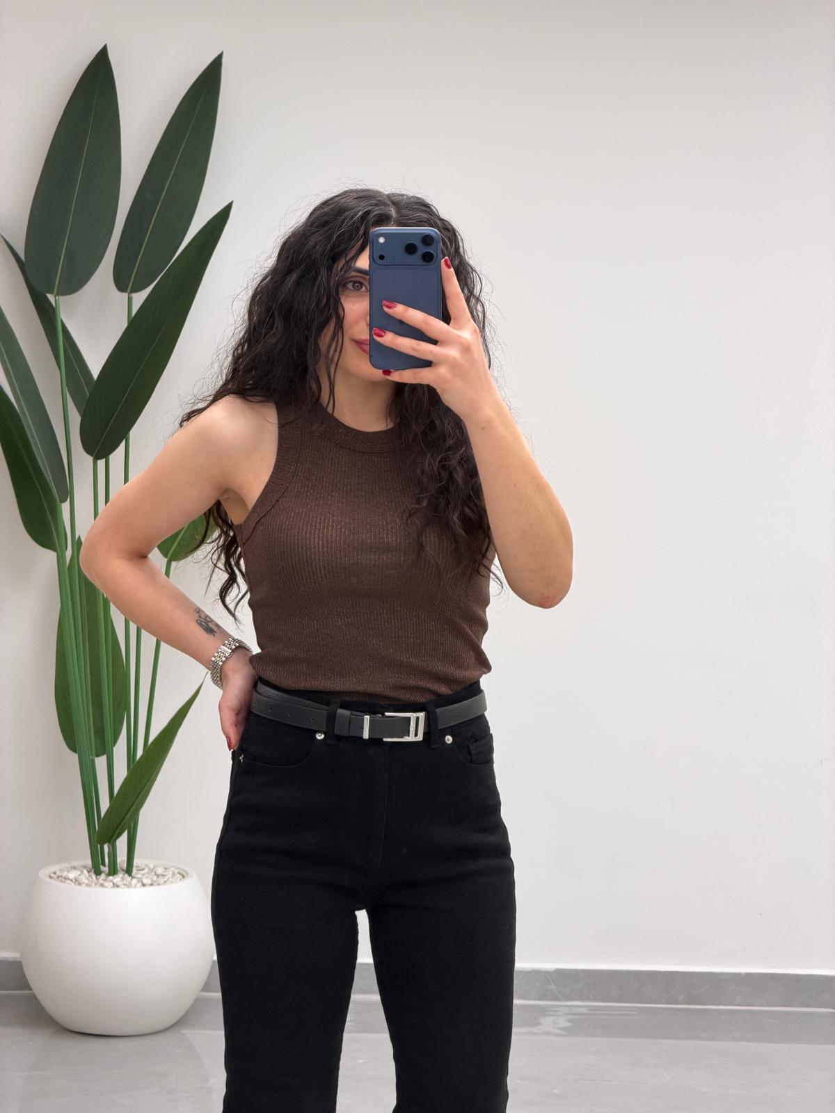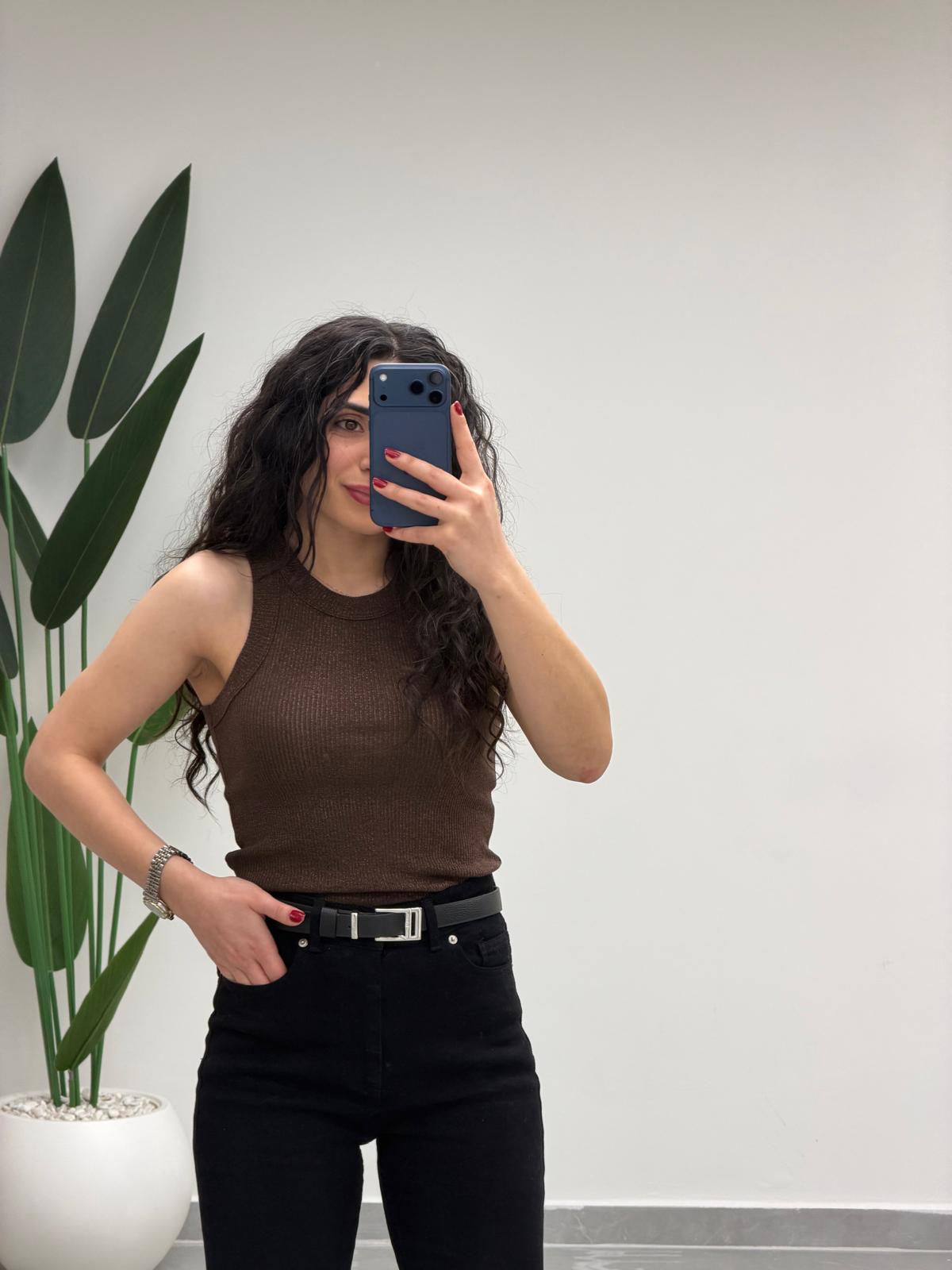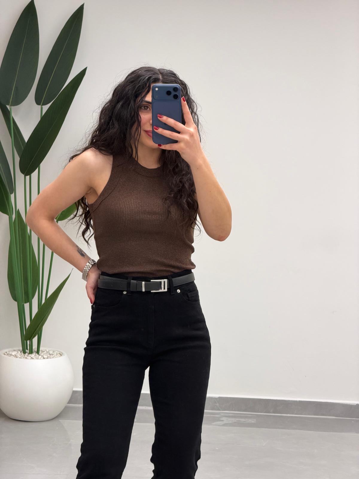 Simli Halter Yaka Atlet Kahve