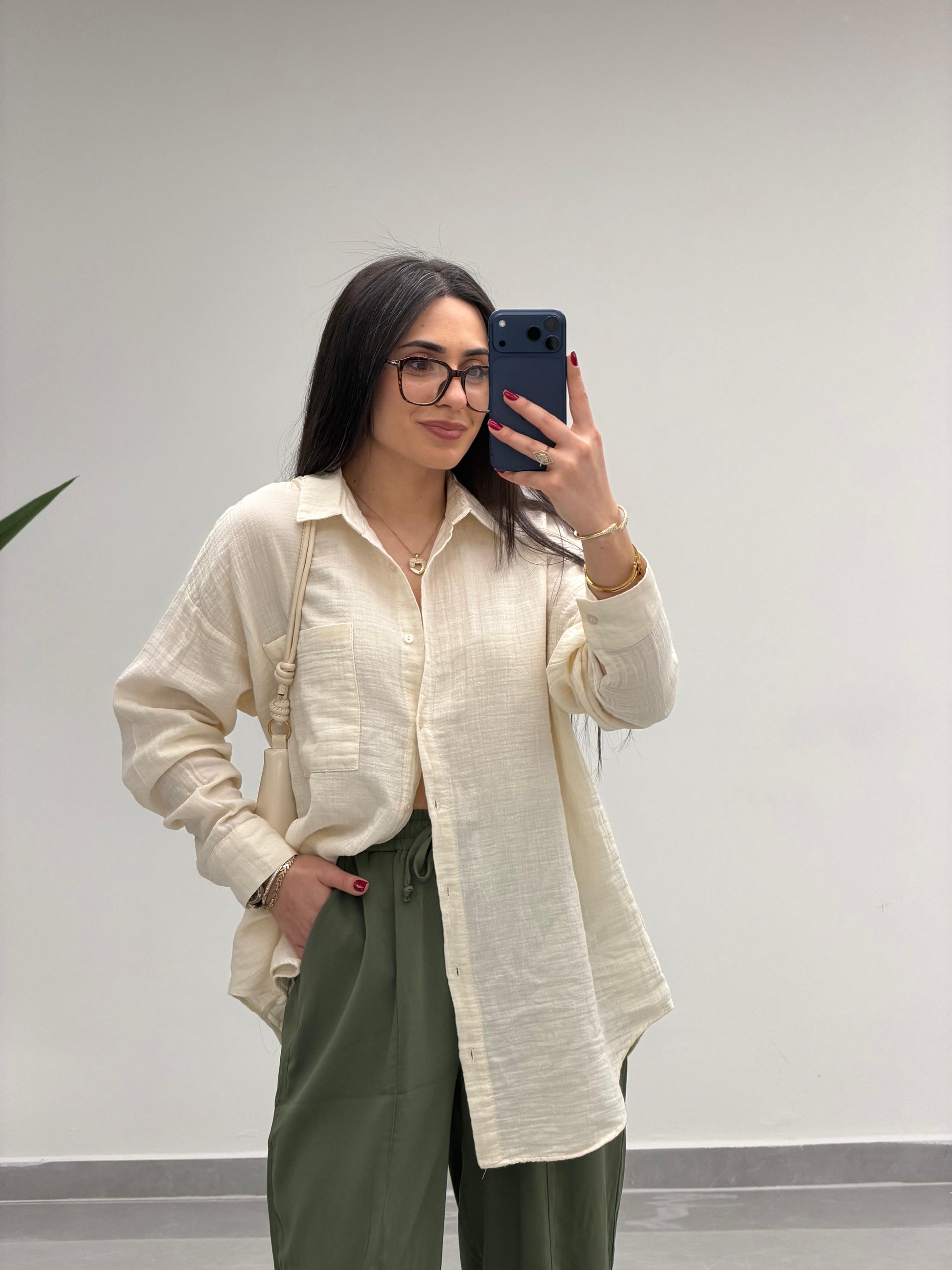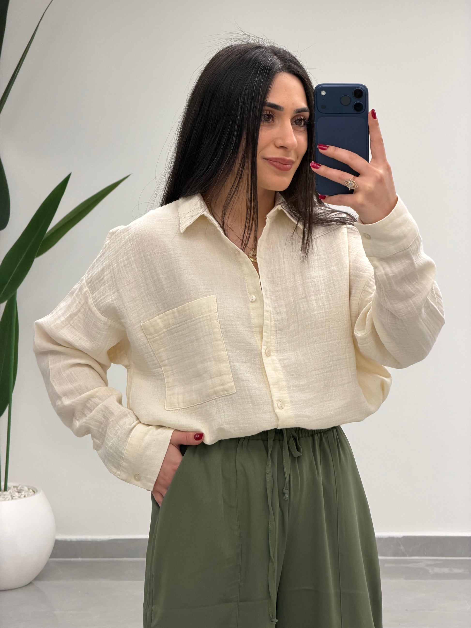 Tek Cepli Oversize Müslin Gömlek Bej