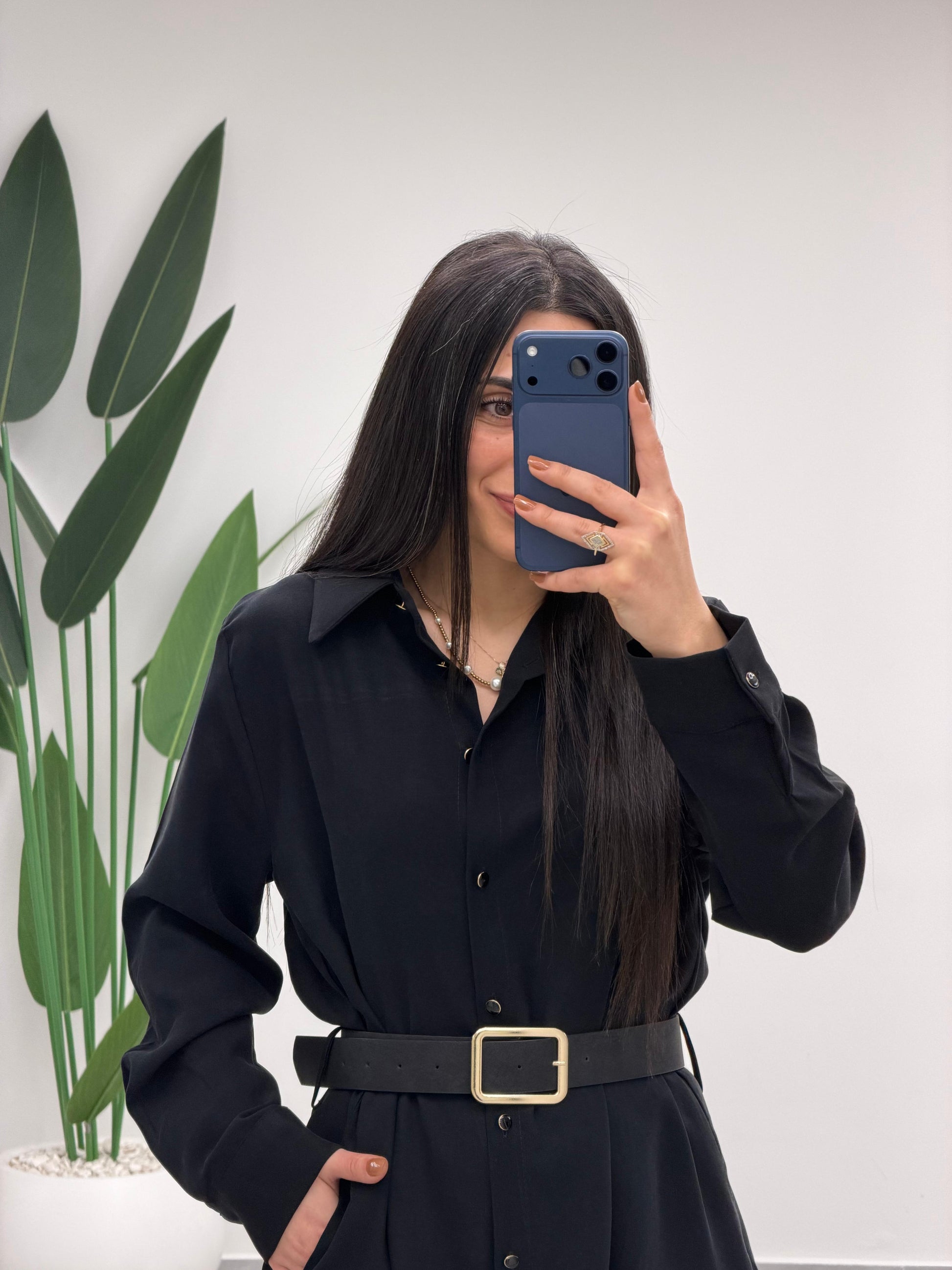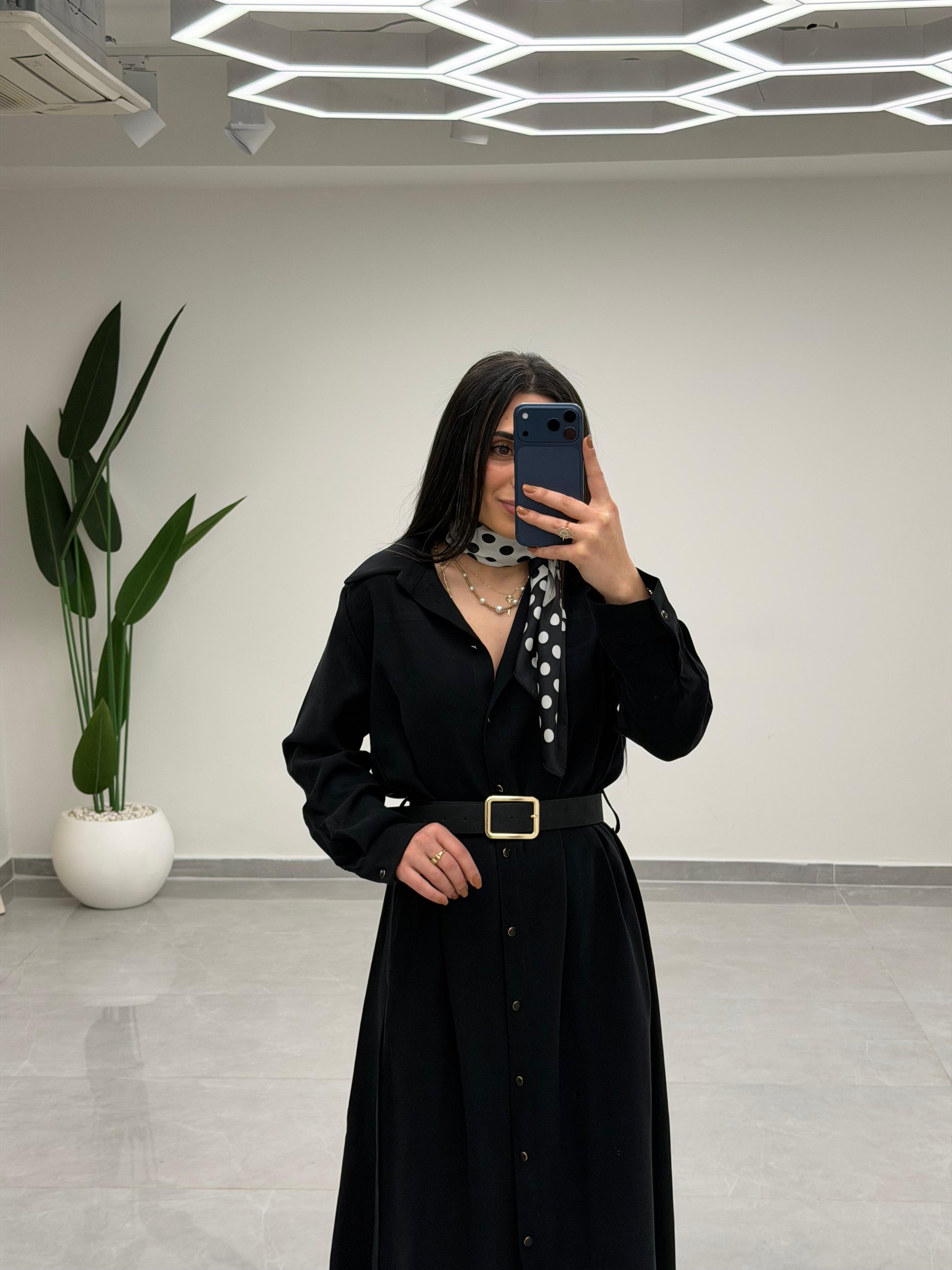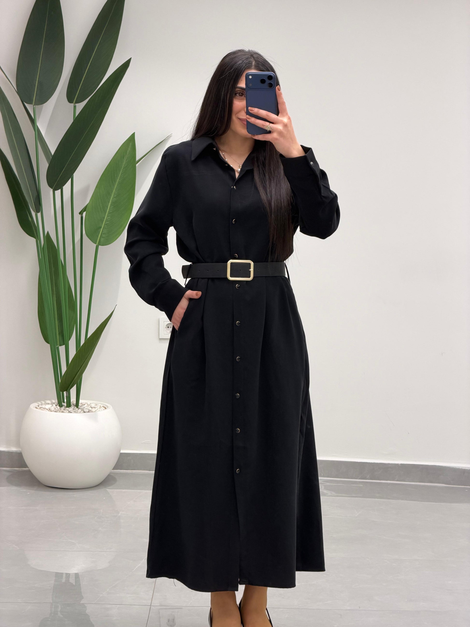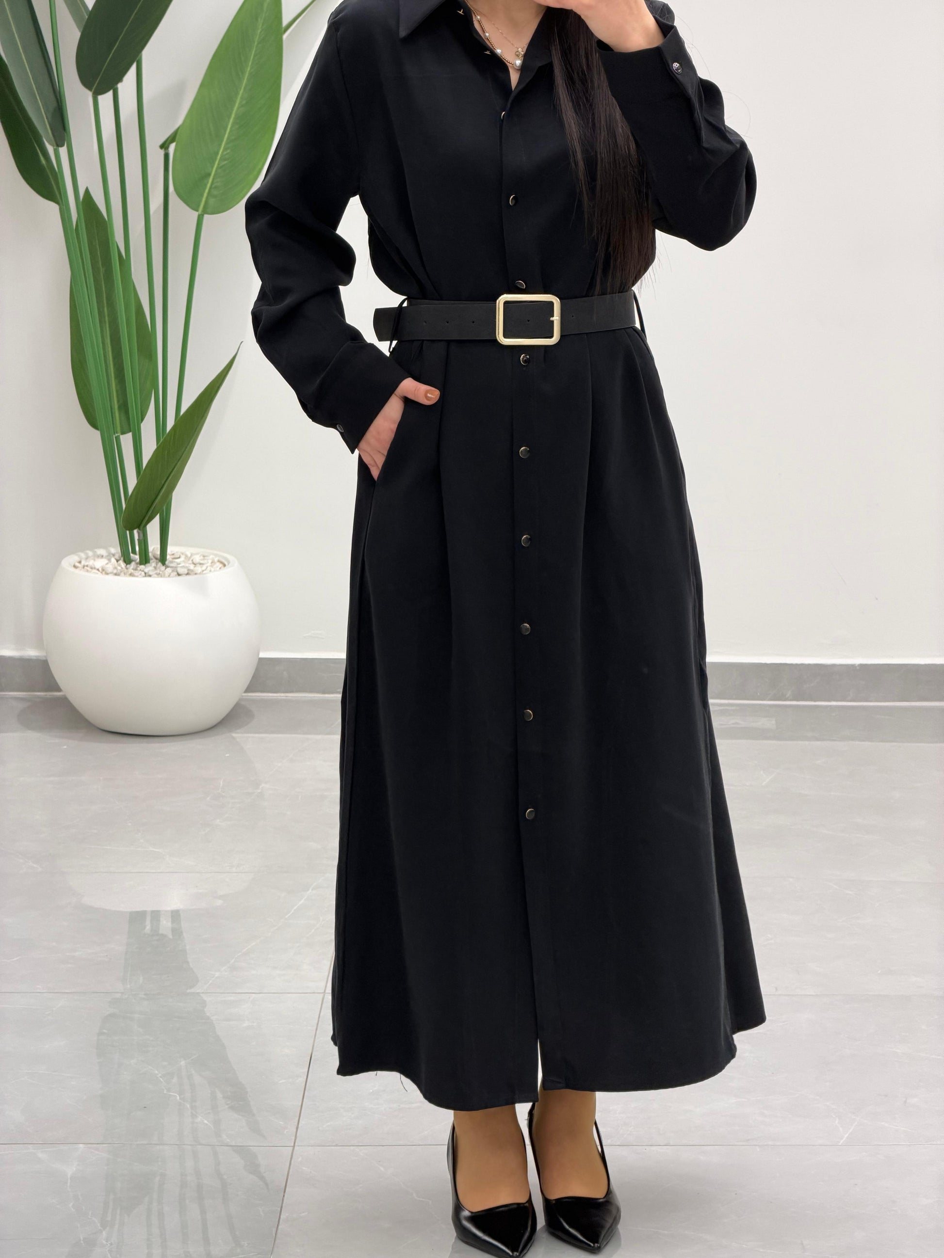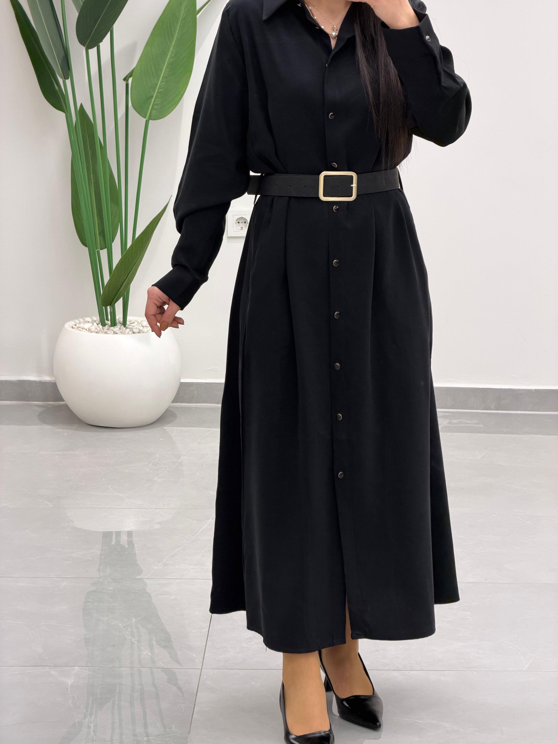 Gömlek Elbise,Düğme Kapamalı,Kemerli,Bilek Boy;