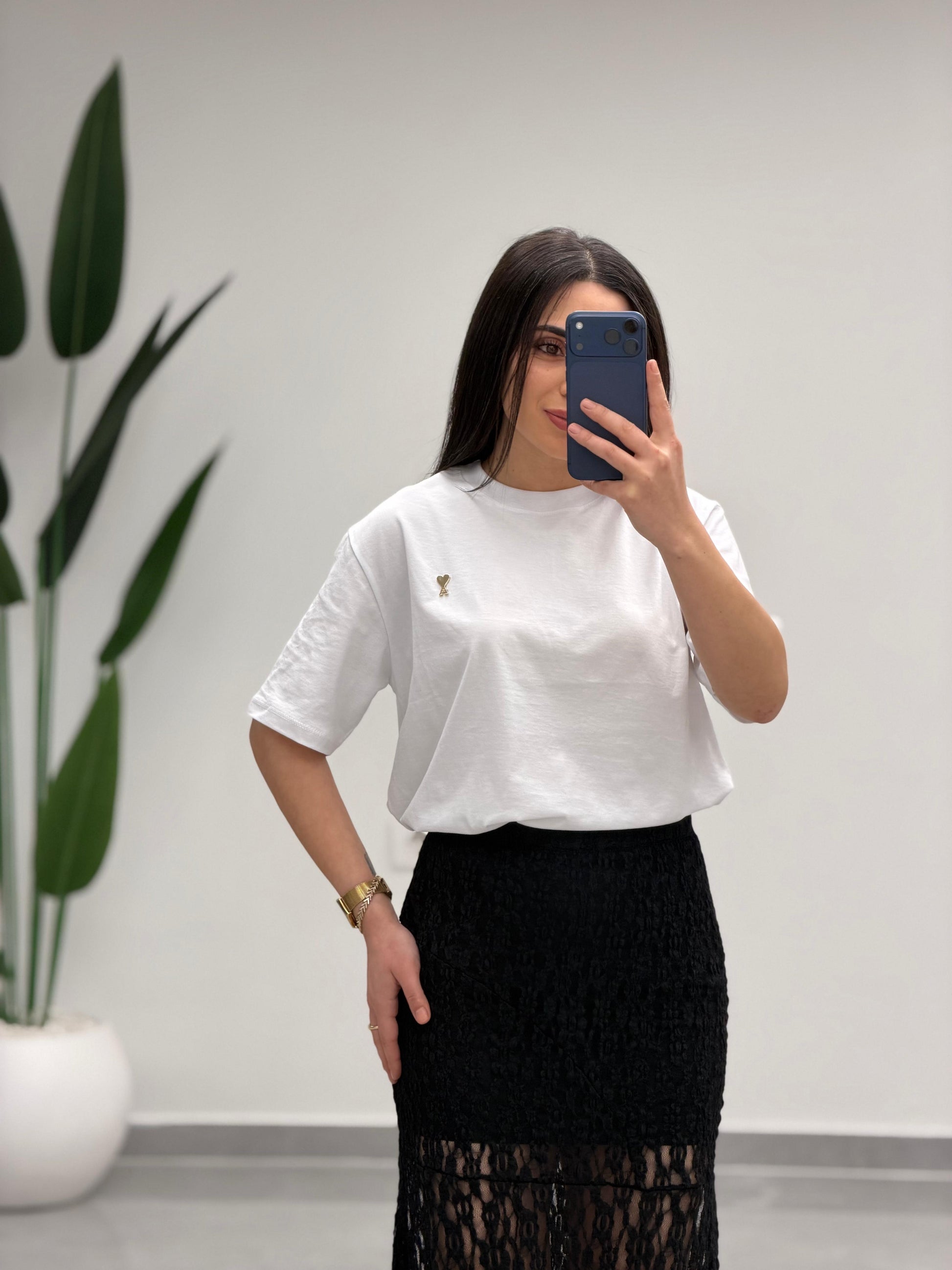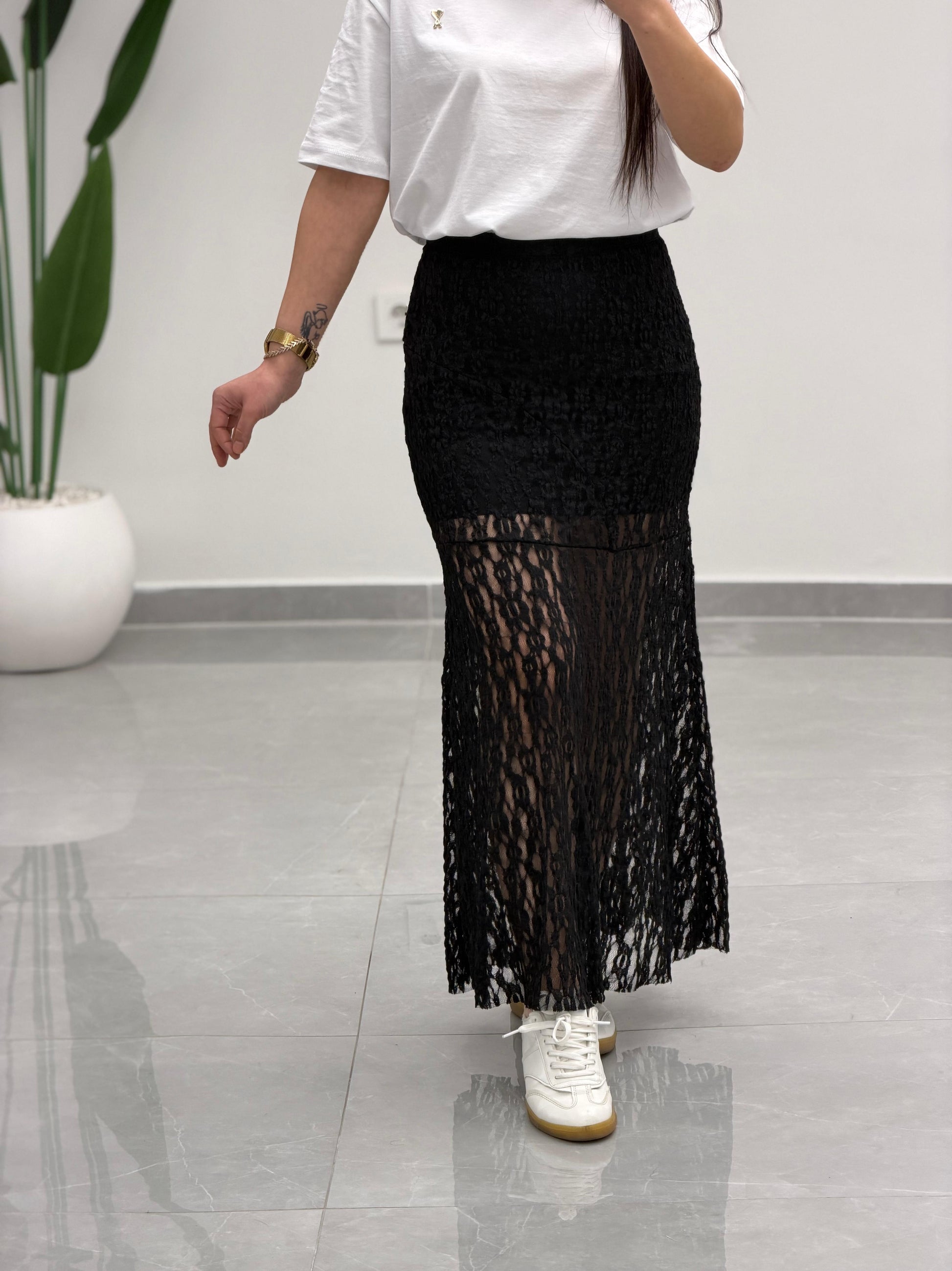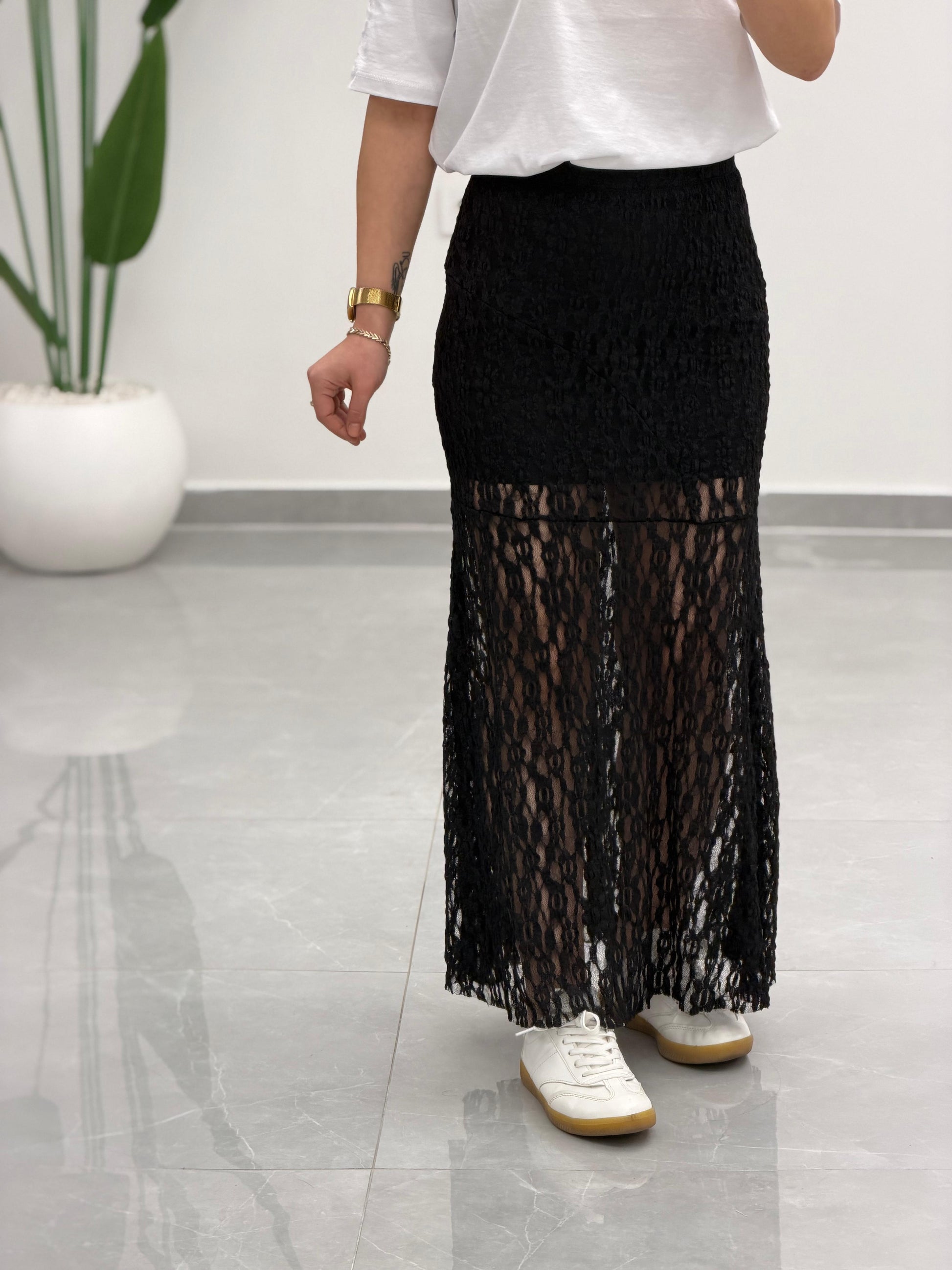 Dantel,Yarım pat fermuarlı,Yarım astarlı midi boy etek;